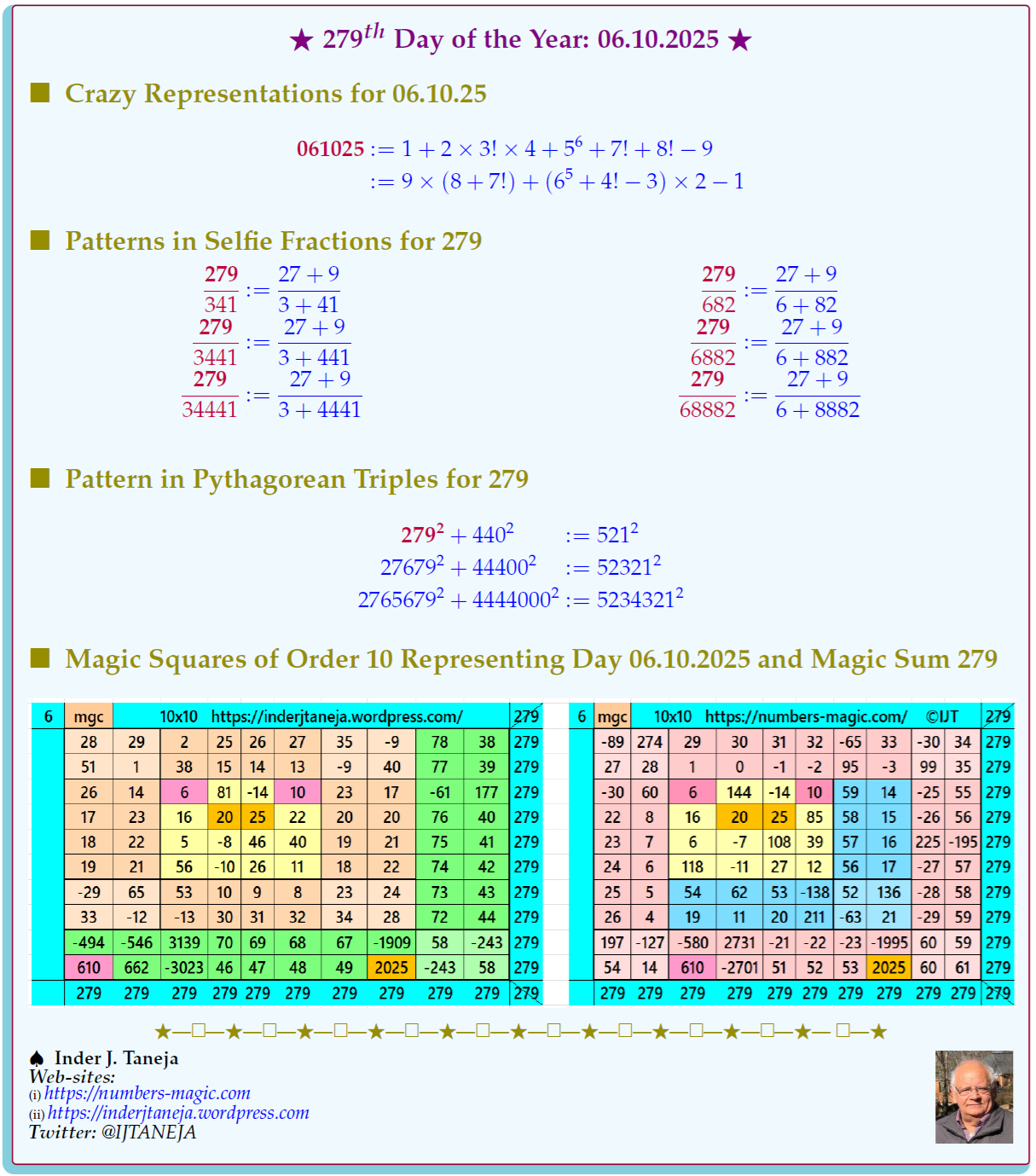 279th Day of the Year – 06.10.2025: Crazy Representations and Magic Squares of Order 10