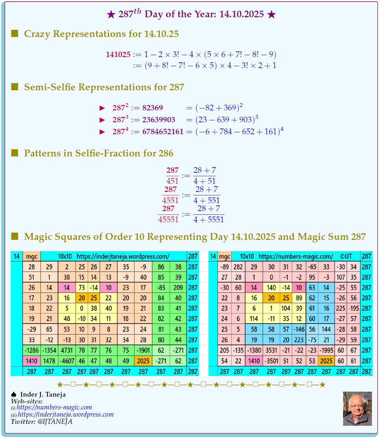 287th Day of the Year – 14.10.2025: Crazy Representations and Magic Squares of Order 10