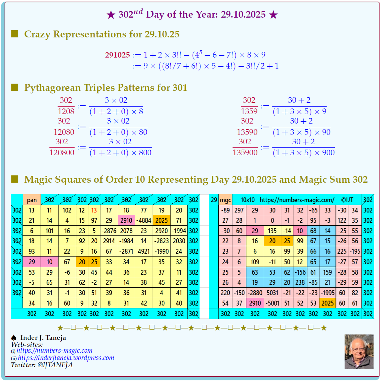 302nd Day of the Year – 29.10.2025: Crazy Representations and Magic Squares of Order 10