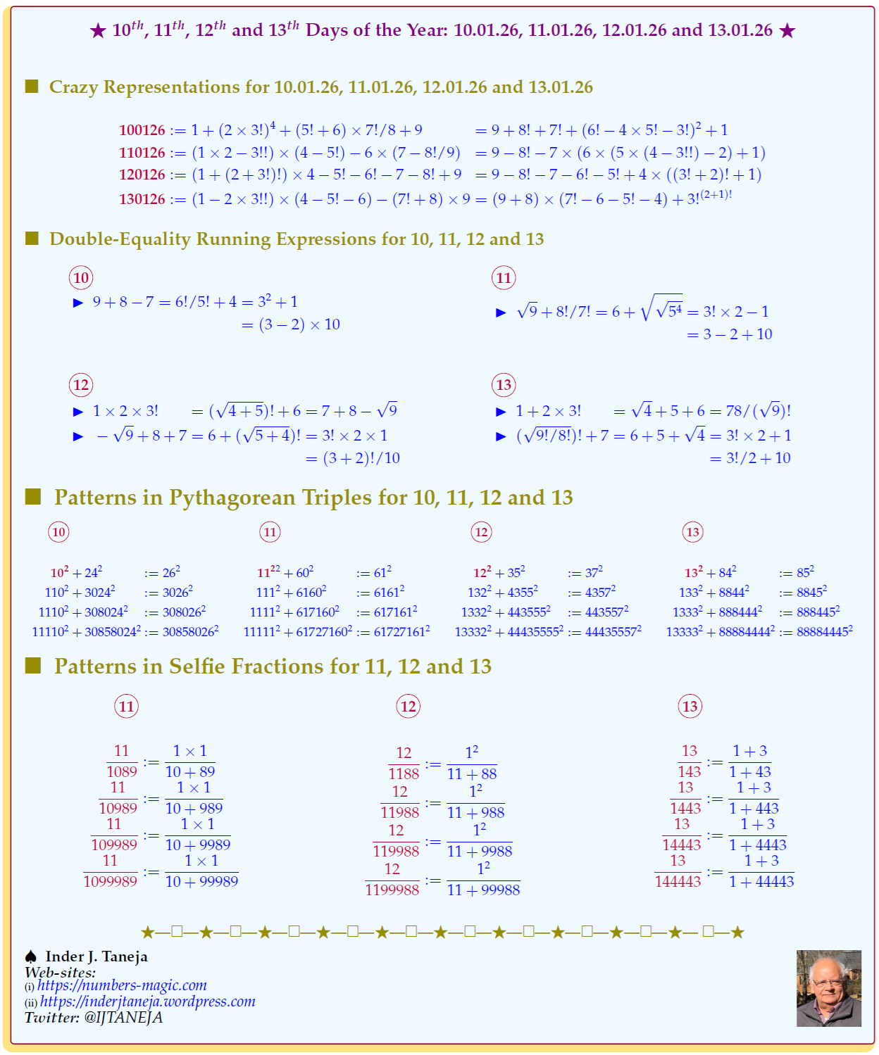 10th, 11th, 12th and 13th Days of the Year: 10.01.26, 11.01.26, 12.01.26 and 13.01.26 – Recreating Numbers and Representations