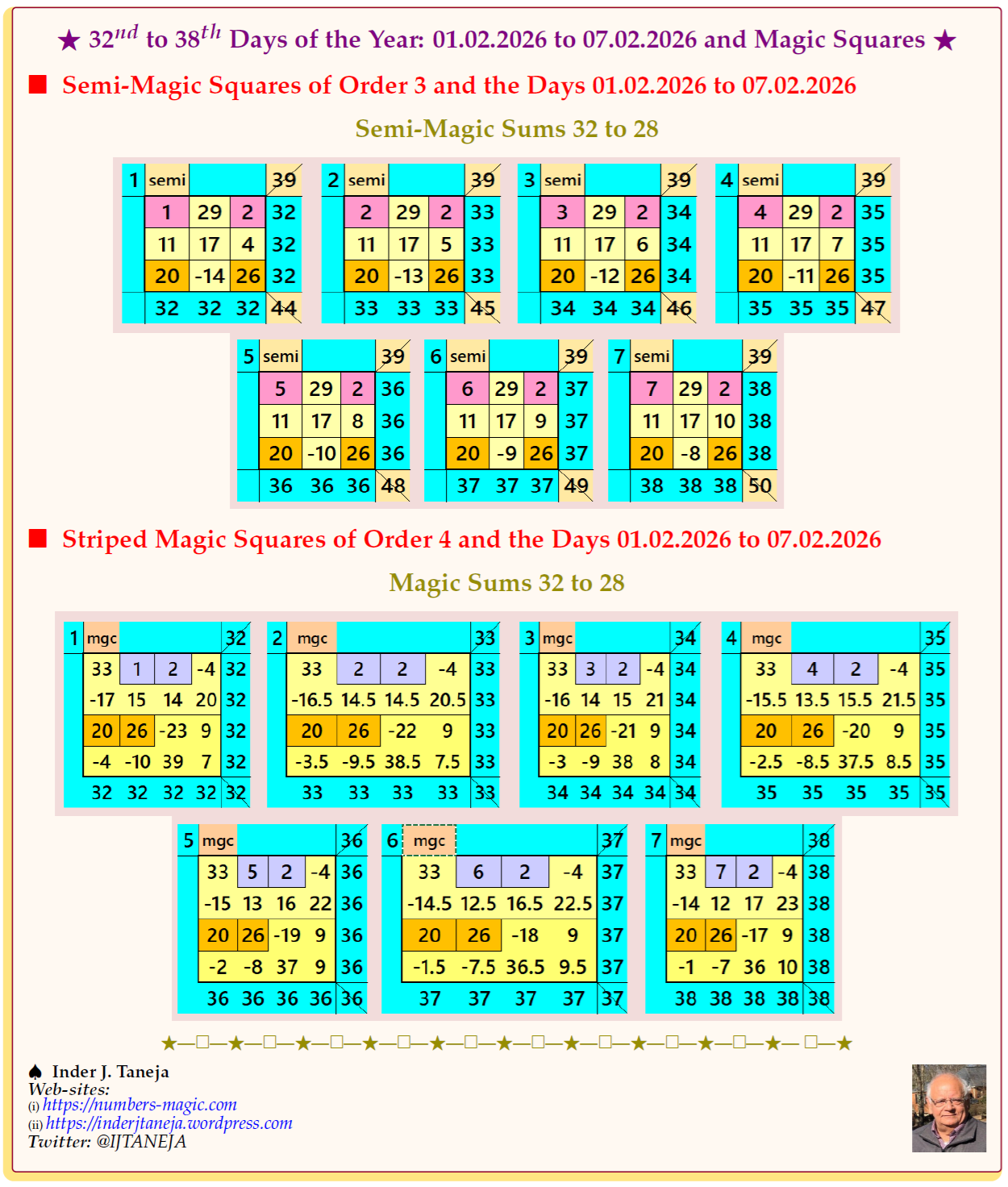 During past years author worked with block-wise bordered magic squares multiples of even and odd number blocks. This means, multiples of 3, 4, 5, 6, etc. These works can be…