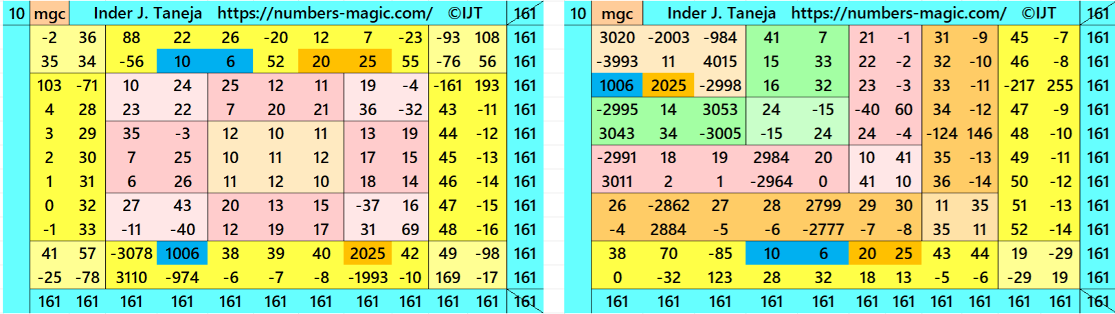 - Inder J. Taneja, Magic Squares of Order 10 Representing Days and Dates of the Year 2025, Zenodo, May 21, 2025, pp. 1-59, https://doi.org/10.5281/zenodo.15481738.