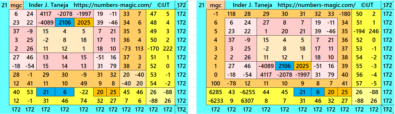 - Inder J. Taneja, Magic Squares of Order 11 Representing Days and Dates of the Year 2025, Zenodo, June 02, 2025, pp. 1-111, https://doi.org/10.5281/zenodo.15576562.