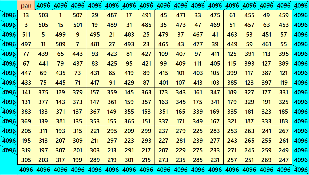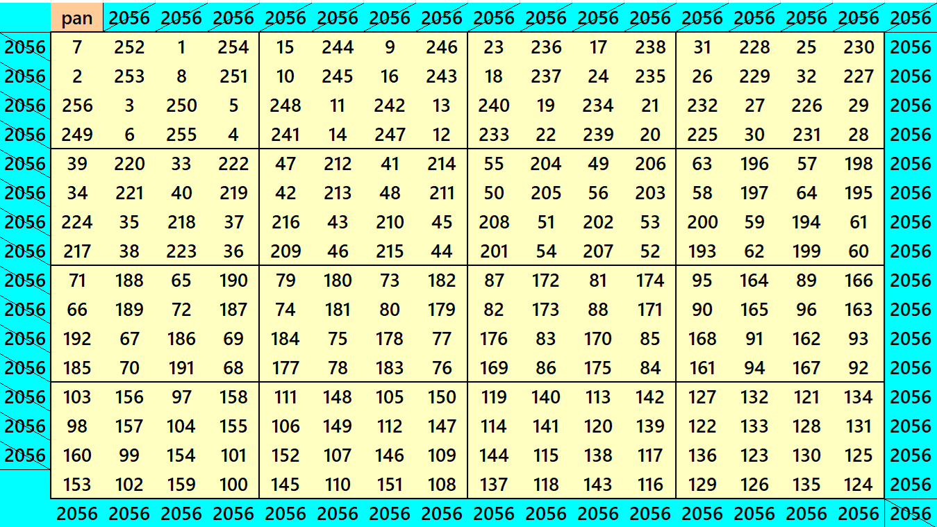 All the work is for the sequential entries from 1 to 256 resulting in magic sum of 2056.