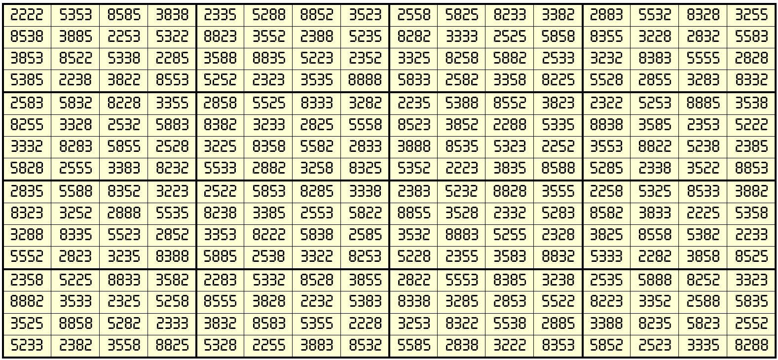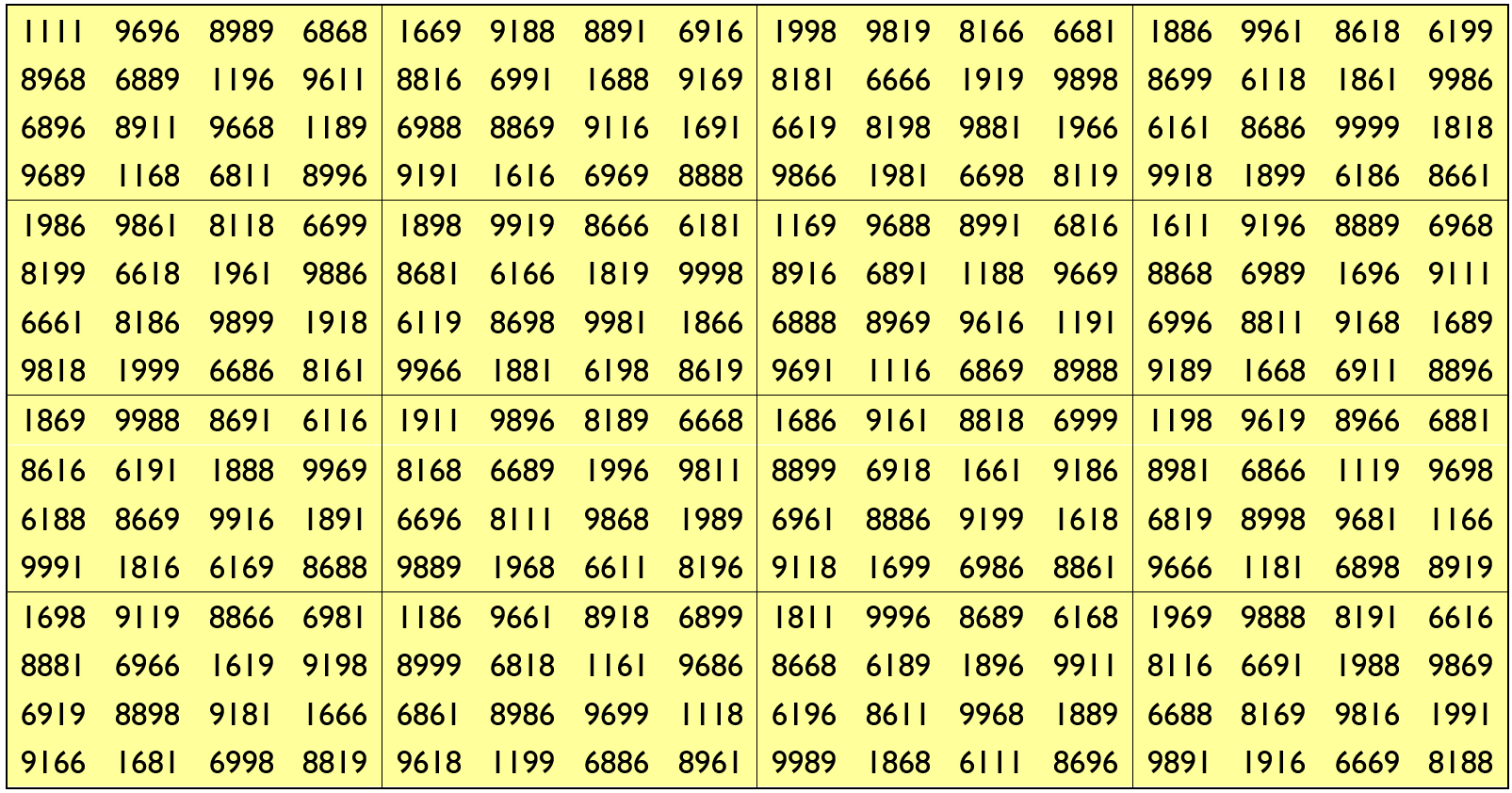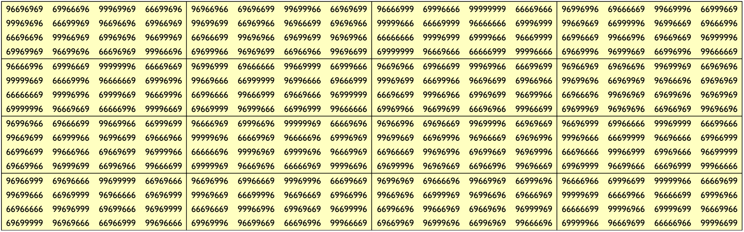 It is a four-digit bordered magic square of order 16 formed by bordered magic rectangles.