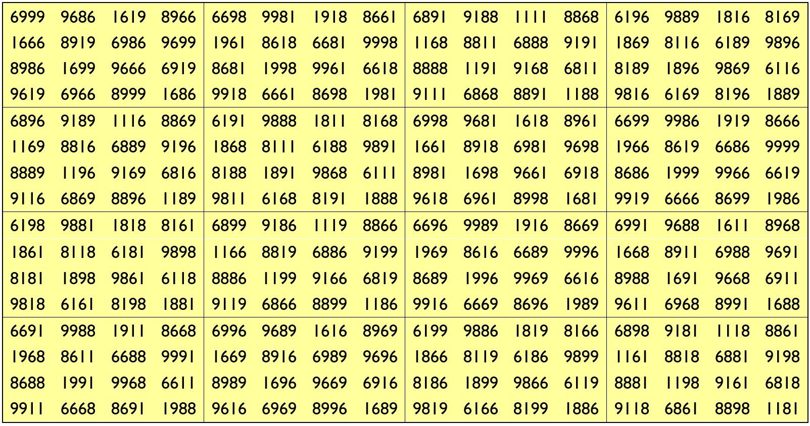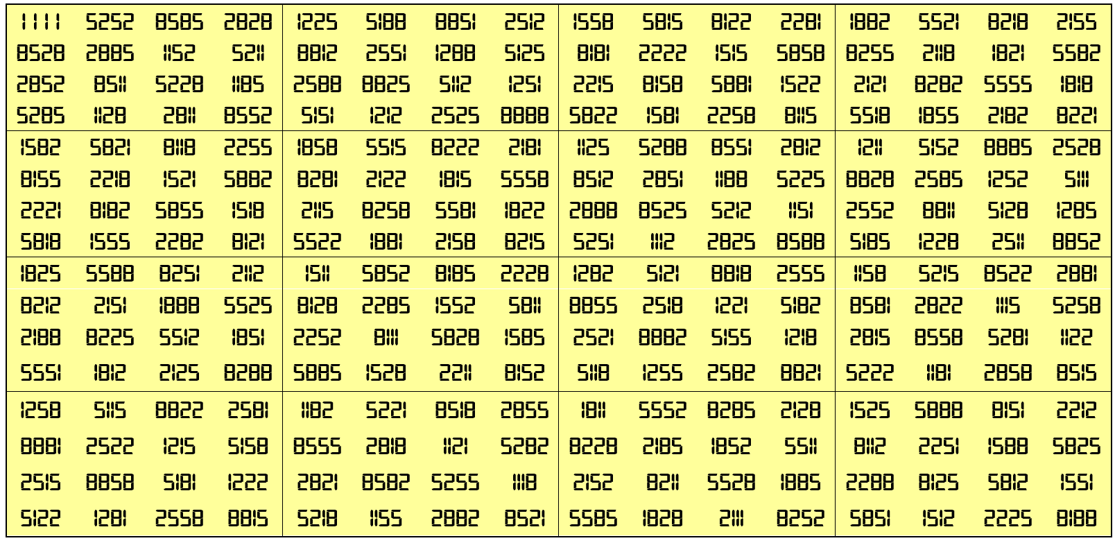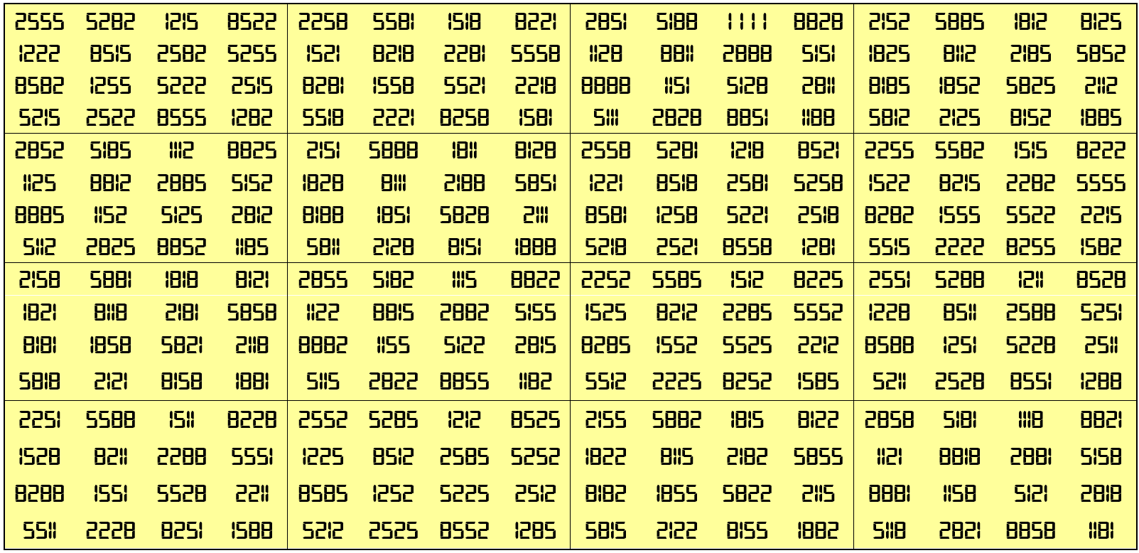 It is a four-digit bordered magic square of order 16 formed by bordered magic rectangles.