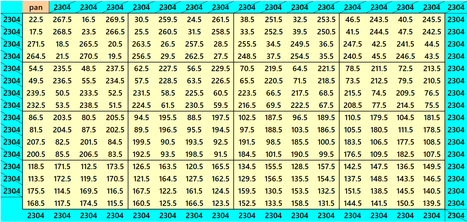 S16×16 = 2304; T256 := 16×2304 = 36864 and S4×4 = 576; T16 := 4×576 = 2304.