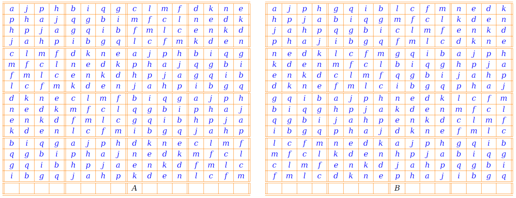 In this case, we have a pair of mutually orthogonal diagonalized Latin squares. Considering an operation 16×(A−1)+B, we get magic square of order 16 given in Example 1.