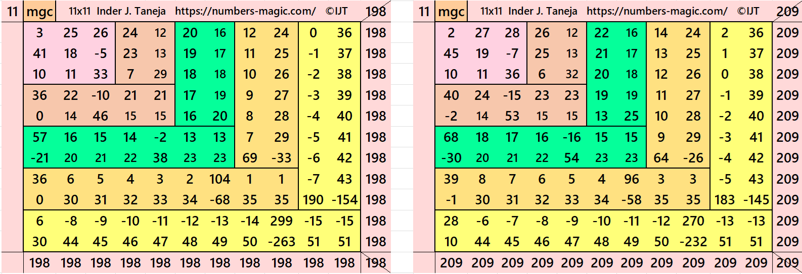 - Inder J. Taneja, Self-Made Algebraic Semi-Magic Squares of Order 11, Zenodo, October 12, 2025, pp. 1-77, https://doi.org/10.5281/zenodo.17330822.