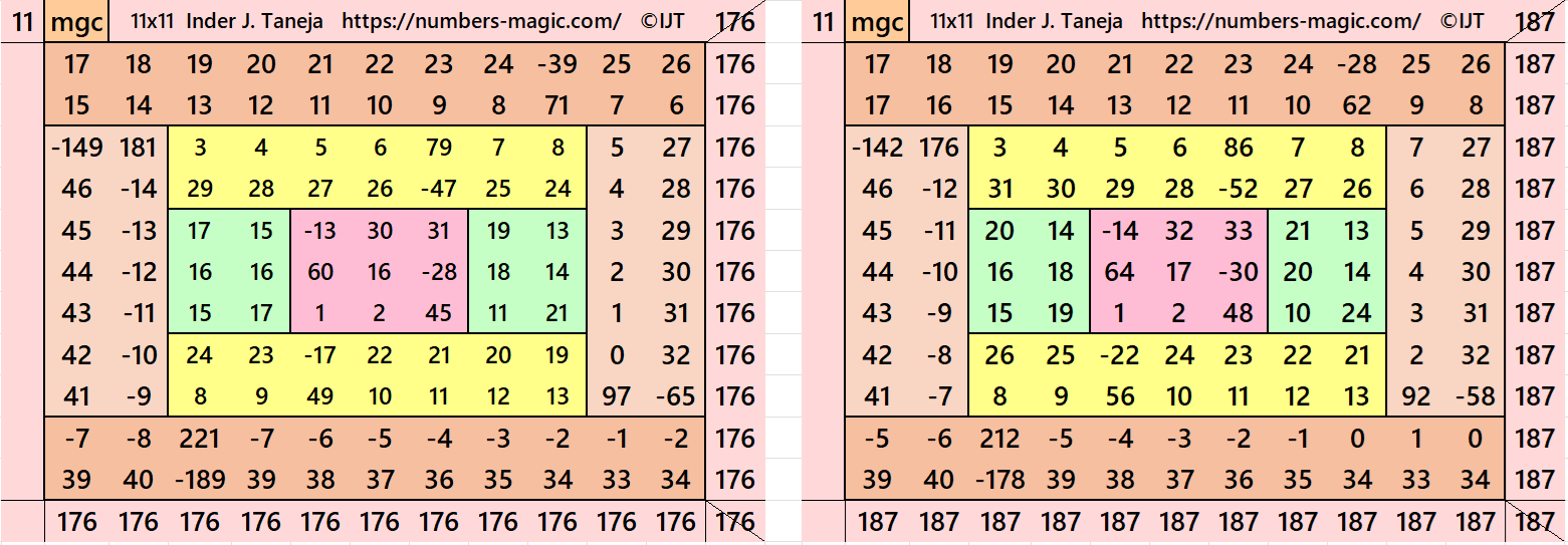 - Site Link: Self-Made Algebraic Magic Squares of Order 11 (new site)