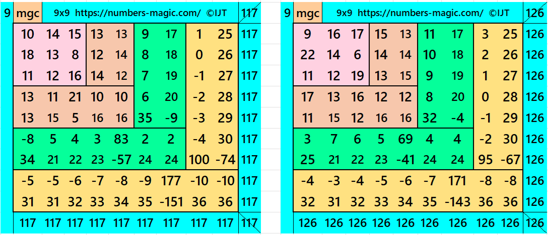 - Site Link: Self-Made Algebraic Magic, Semi-Magic and Pandiagonal Magic Squares of Order 9 (new site)