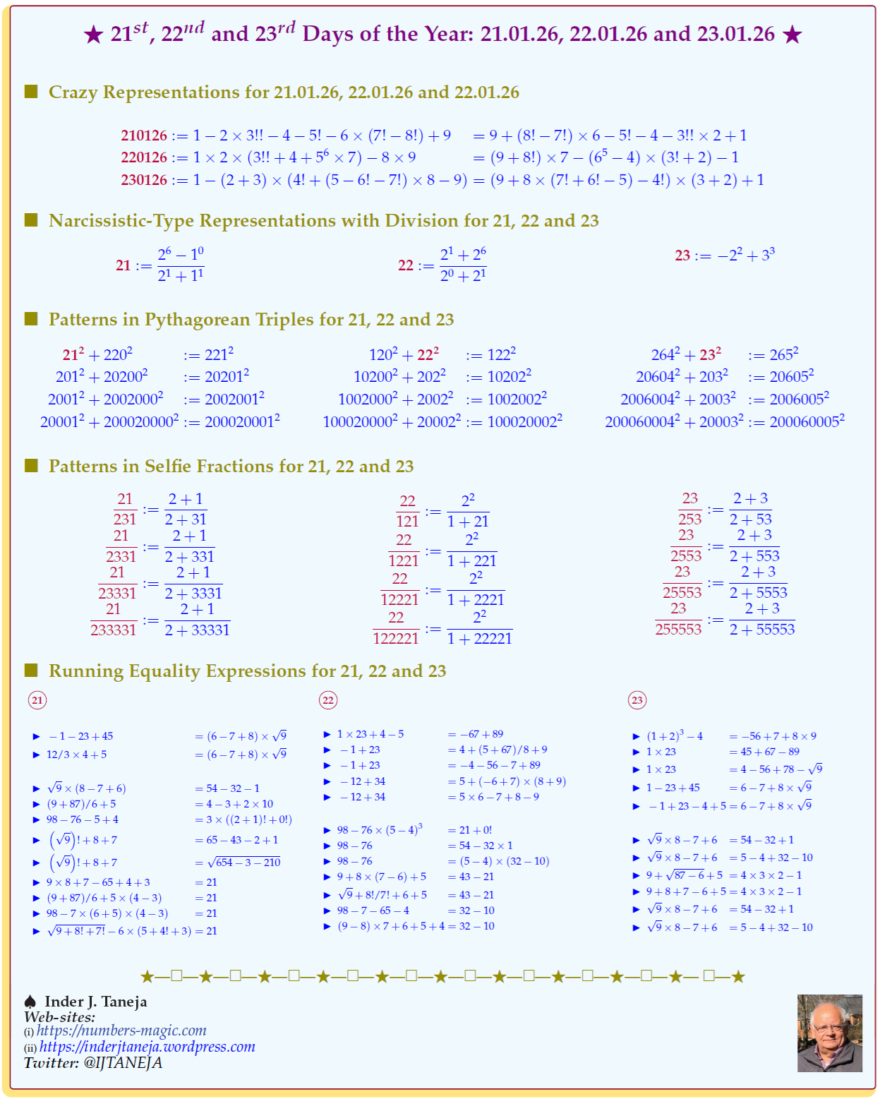 Inder J. Taneja, Crazy Running Equality Expressions with Factorial and Square-Root, Zenodo, December 06, 2021, pp. 1-464, https://doi.org/10.5281/zenodo.5761752.