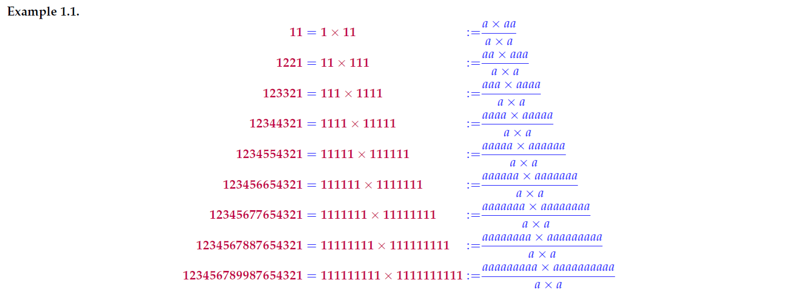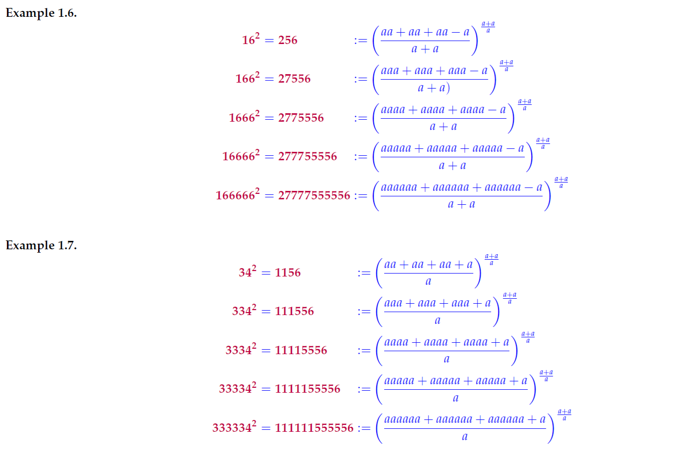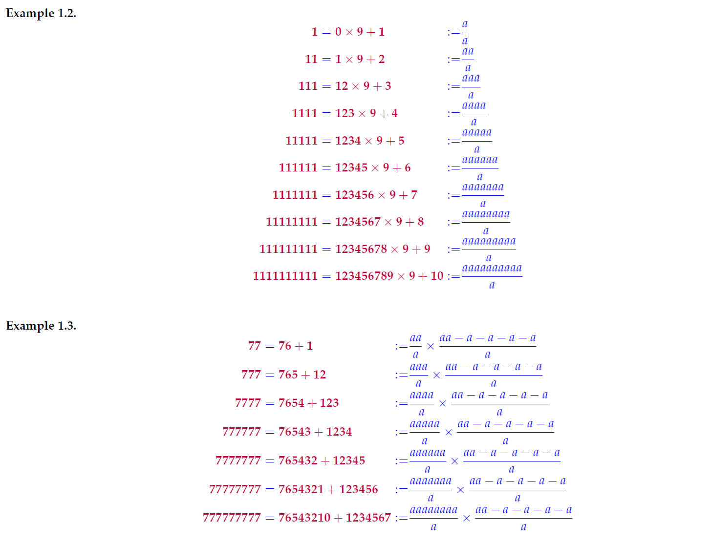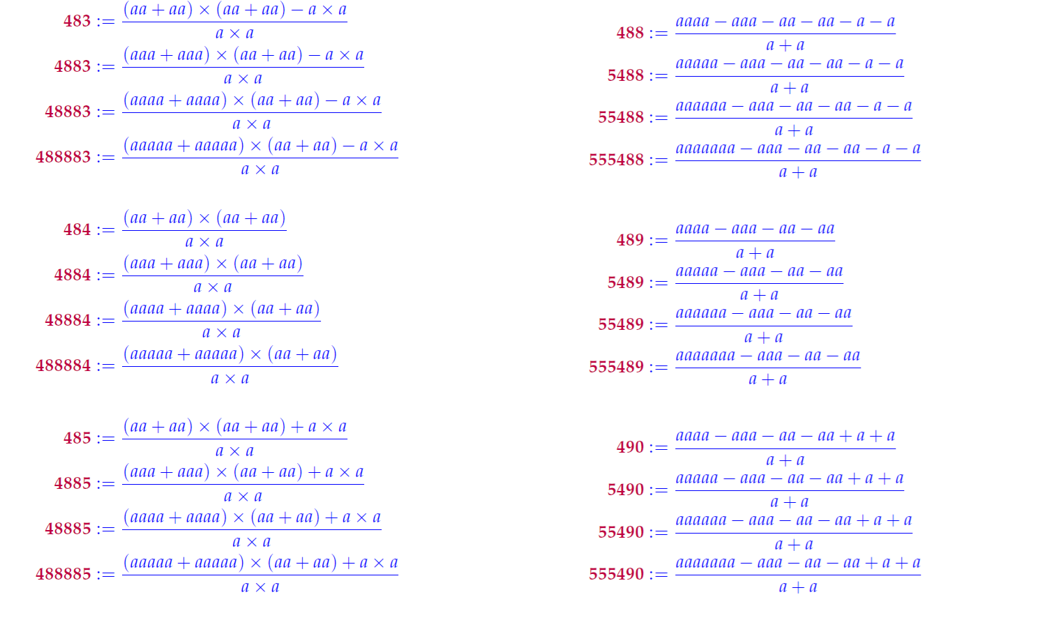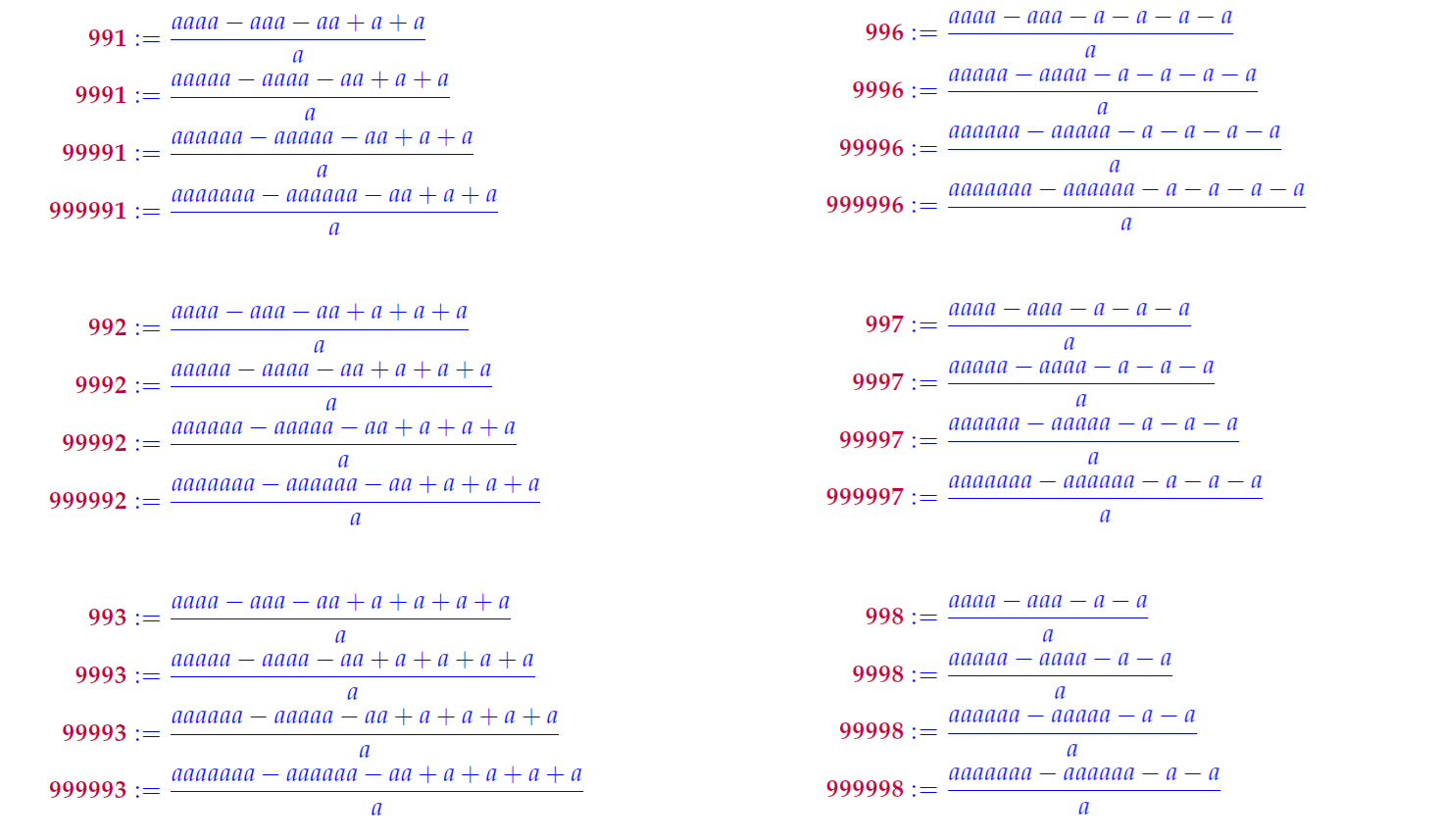 Below are few examples of patternized numbers written in terms of letter a