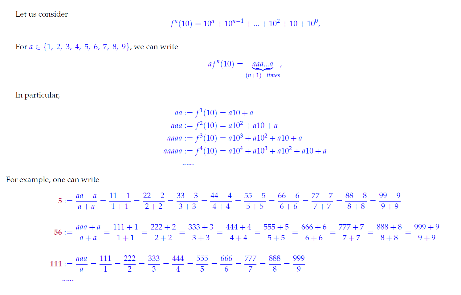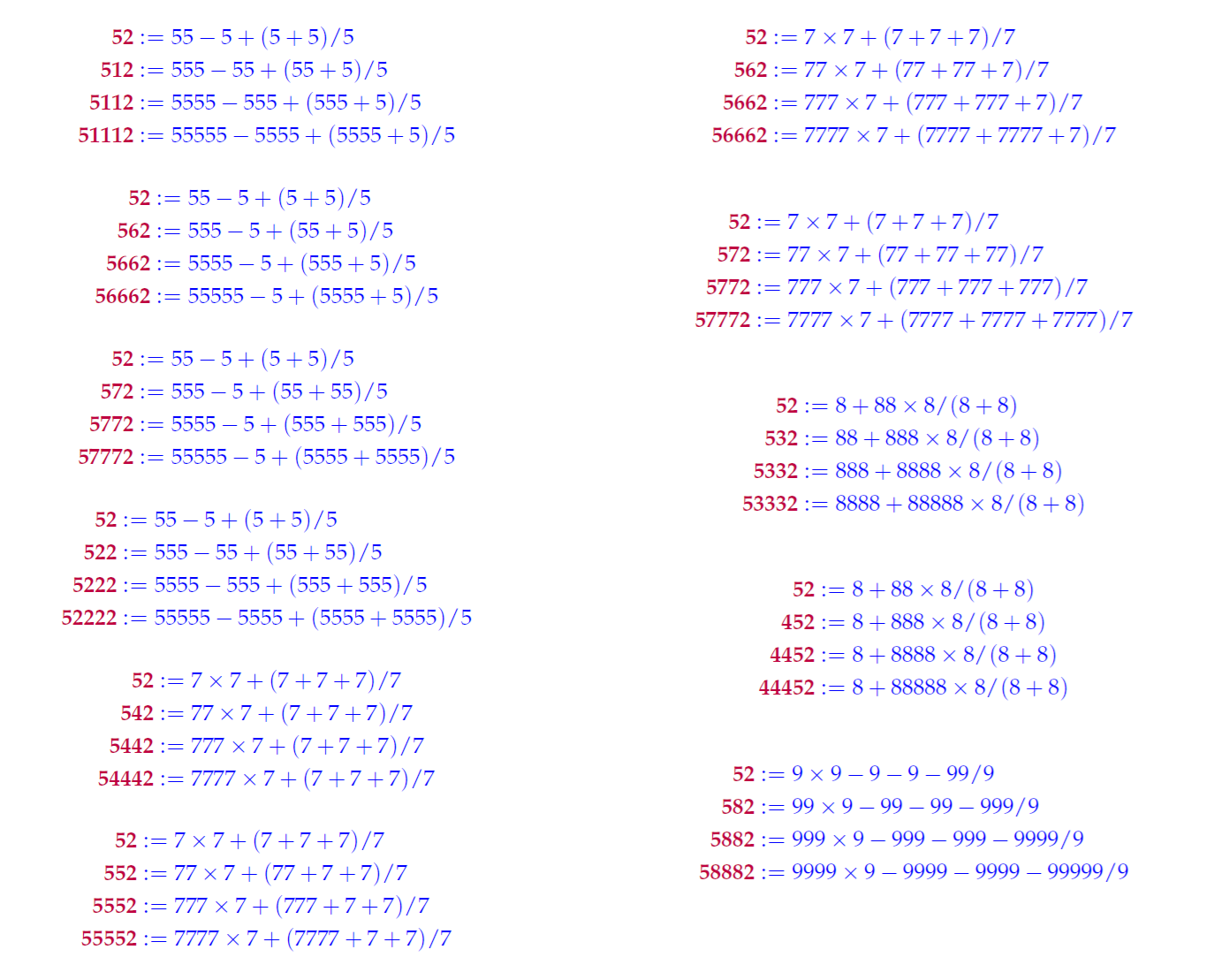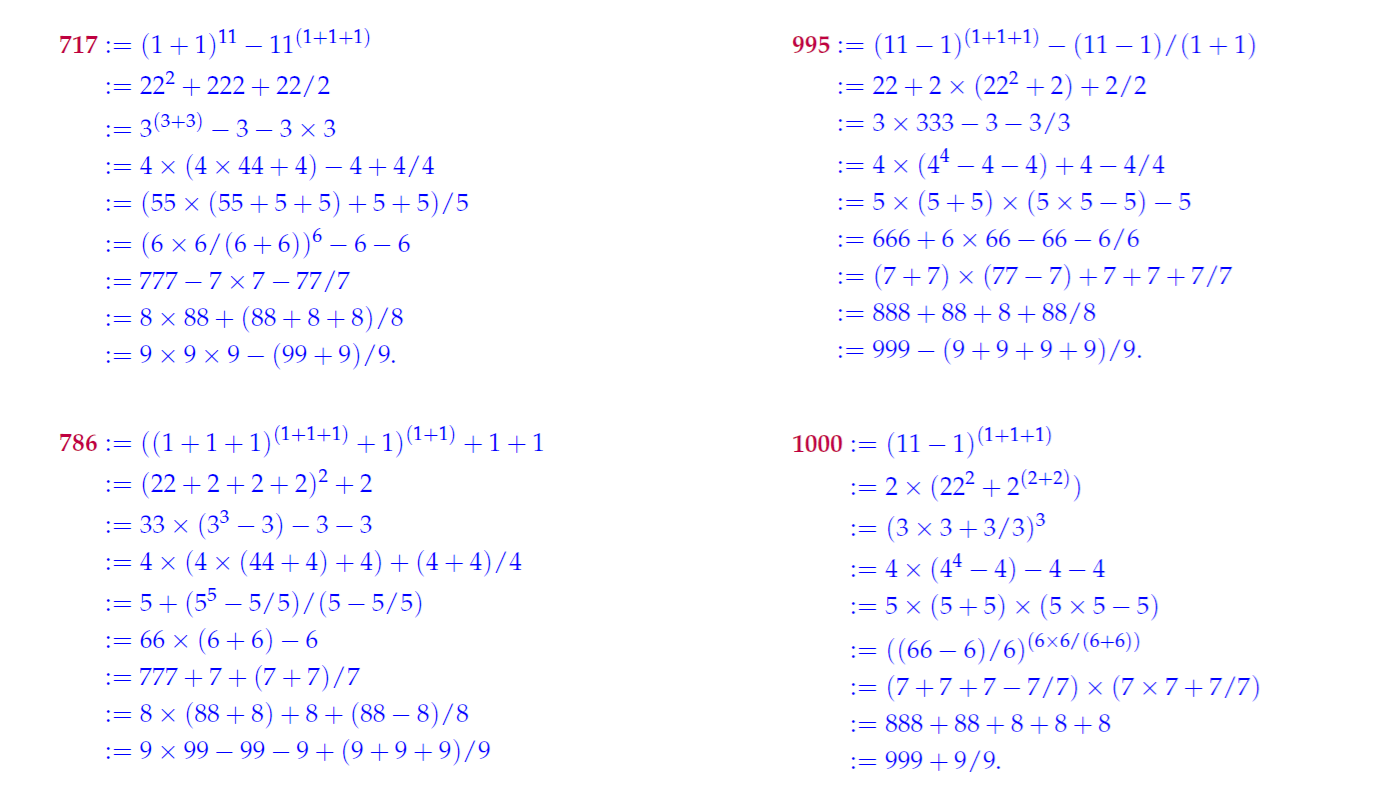 - Inder J. Taneja, Single Digit Representations of Natural Numbers From 5001 to 10000, Zenodo, January 14, 2019, http://doi.org/10.5281/zenodo.2538897.