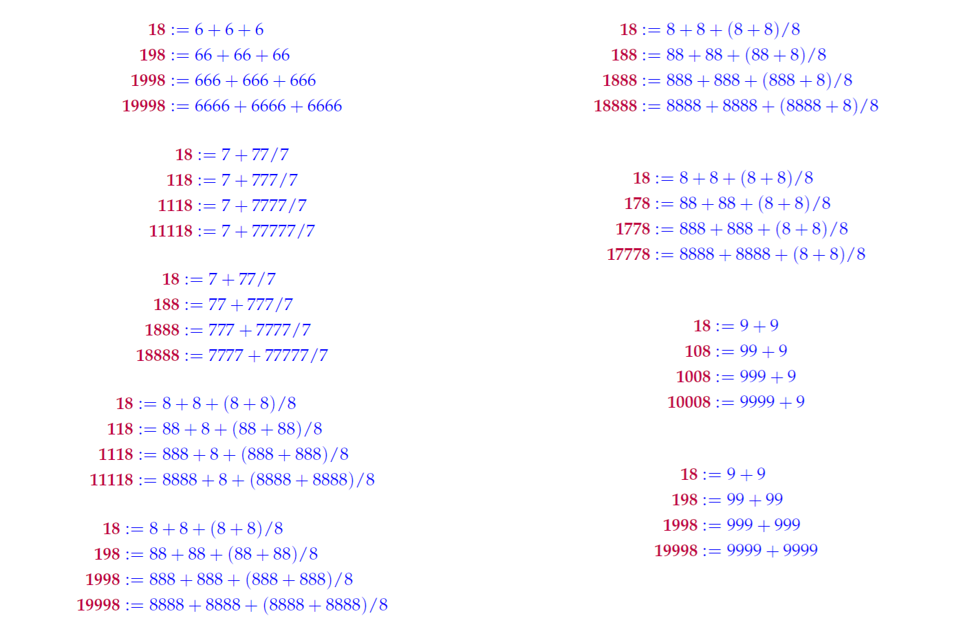 - Inder J. Taneja, Single Digit Representations of Numbers From 15001 to 20000, Zenodo, January, 26, 2019, pp. 1-510, http://doi.org/10.5281/zenodo.2550440.
