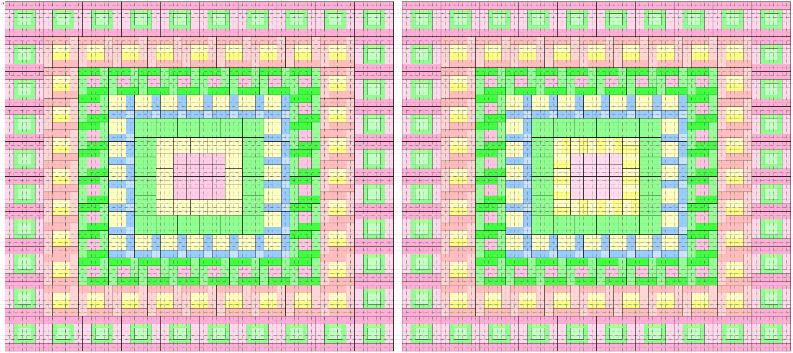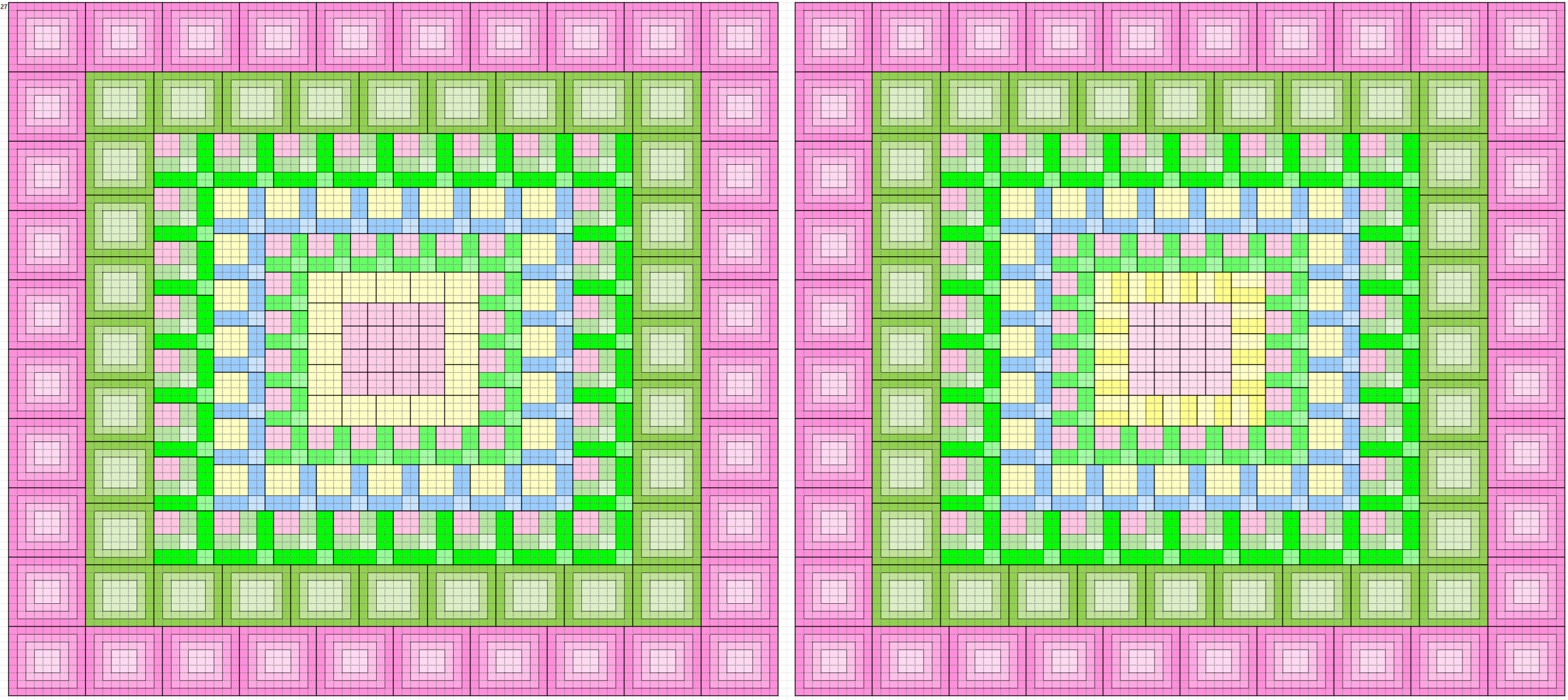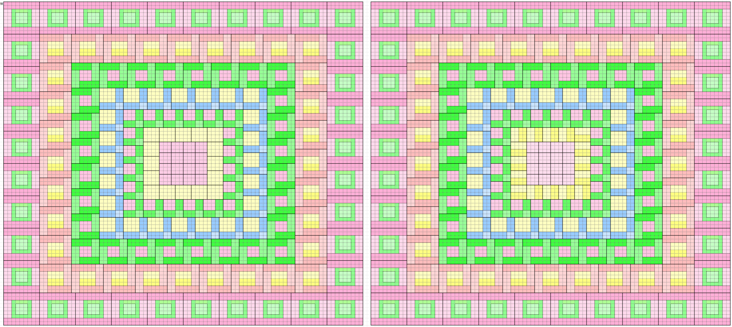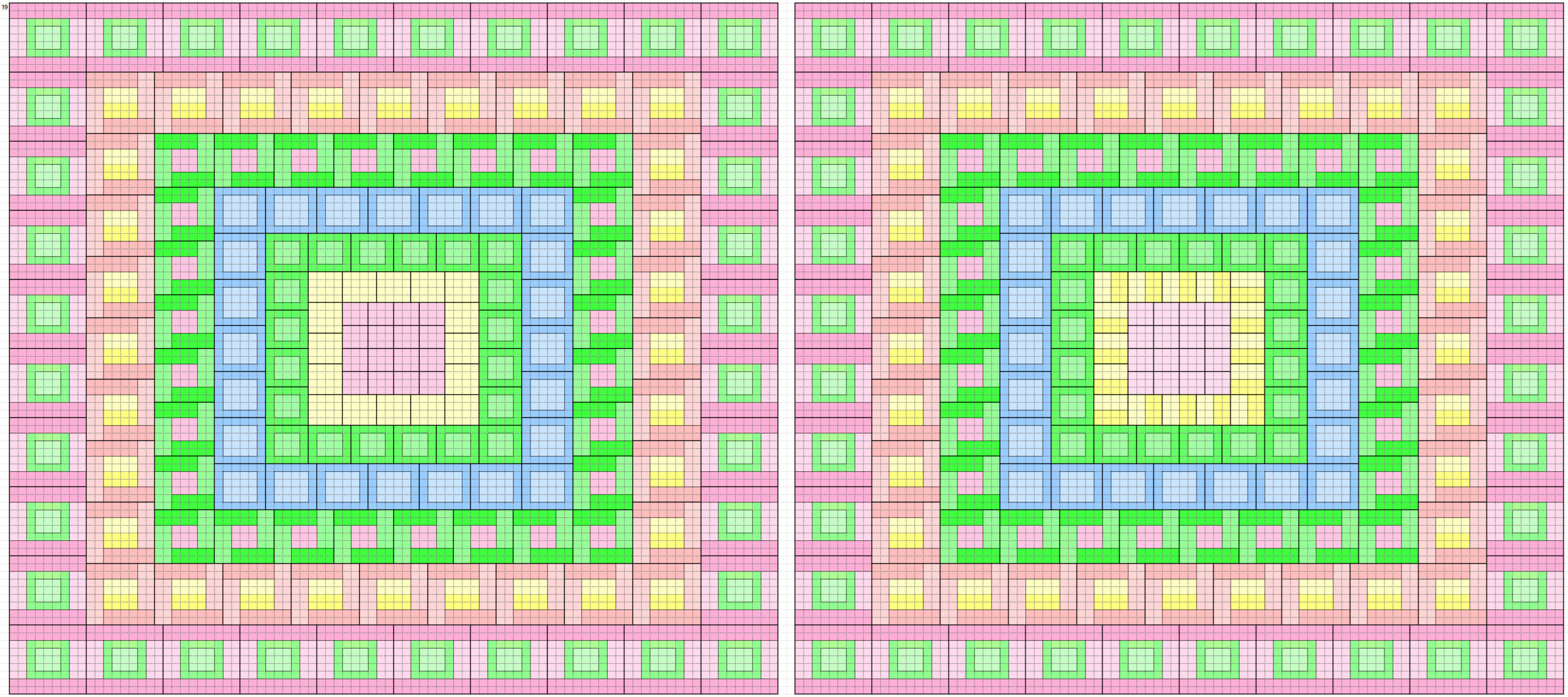 - Initially, we have a magic square of order 12 formed by different sums magic squares of order 3.