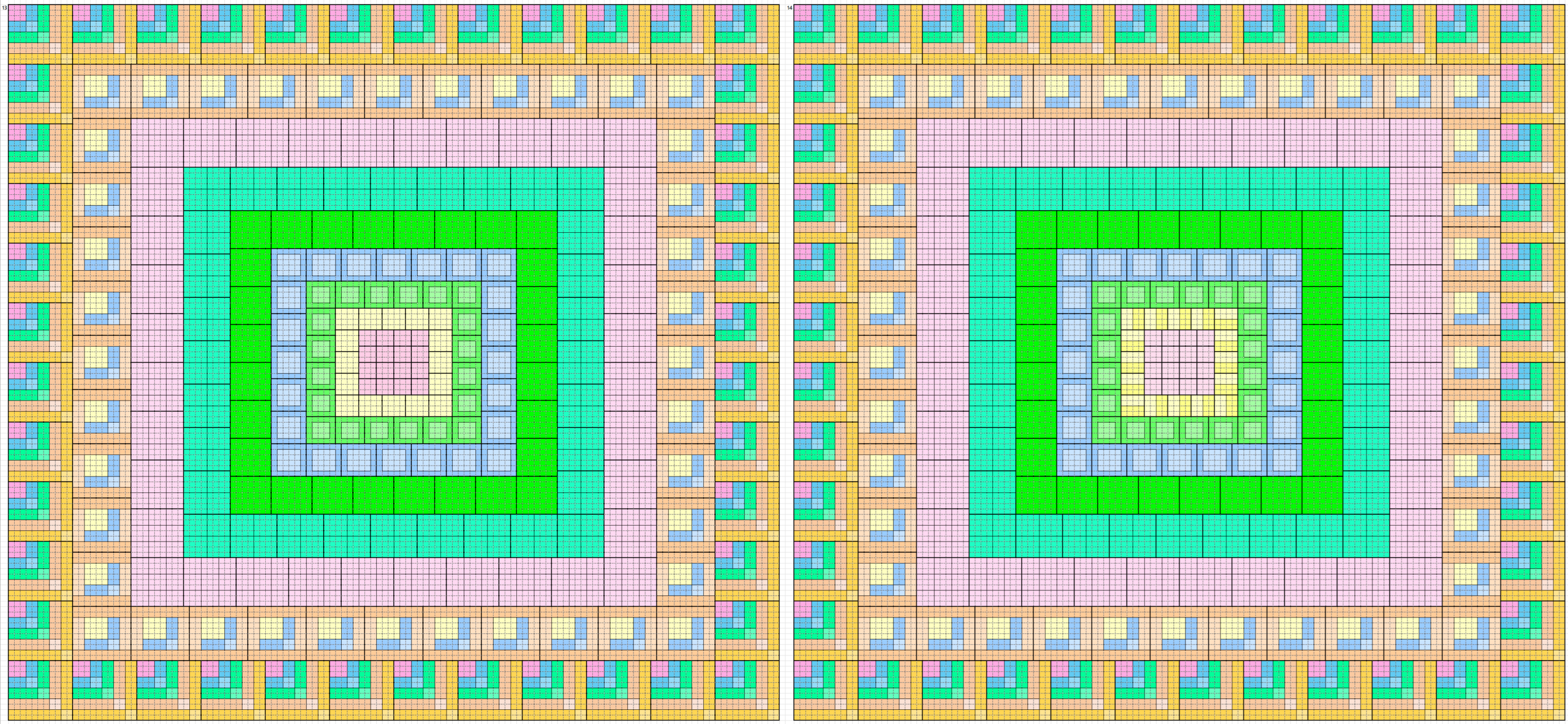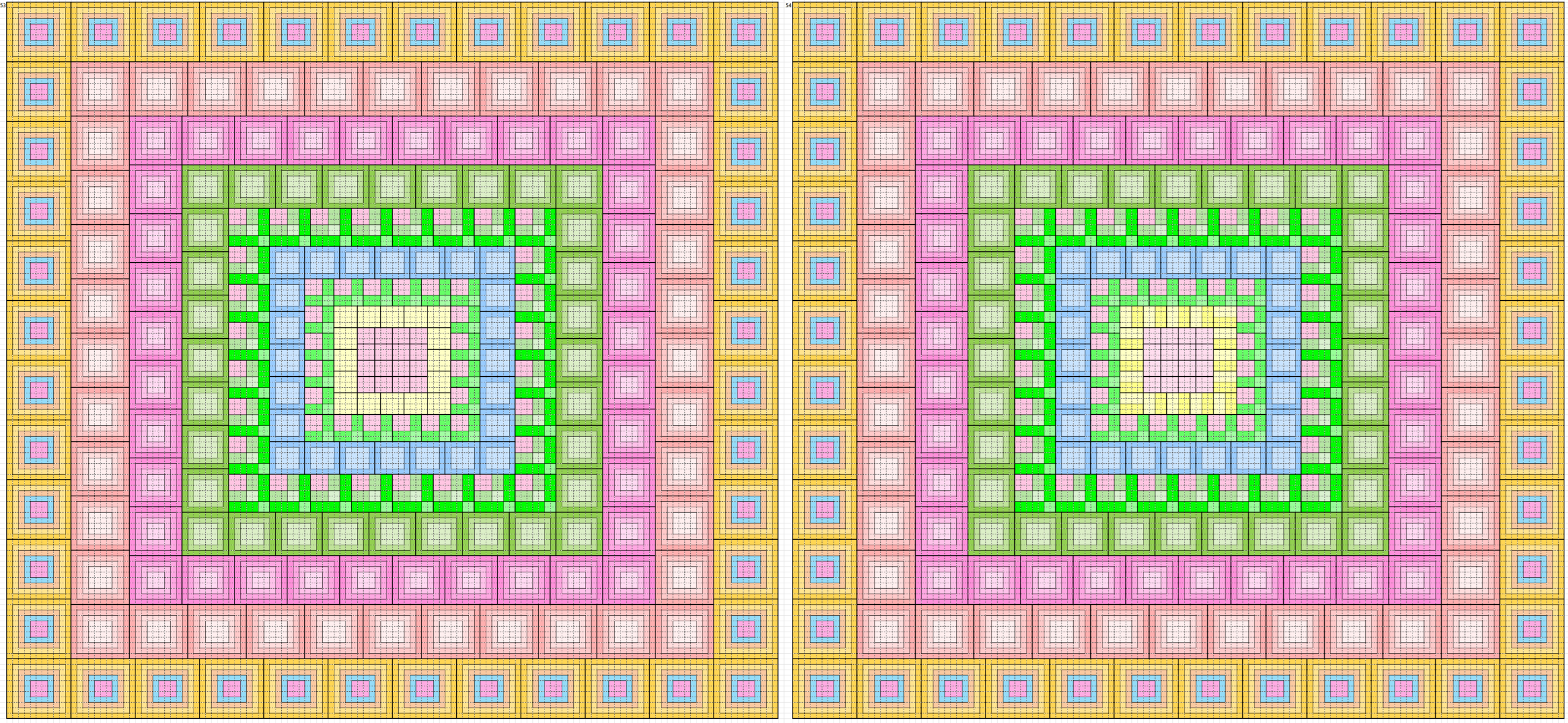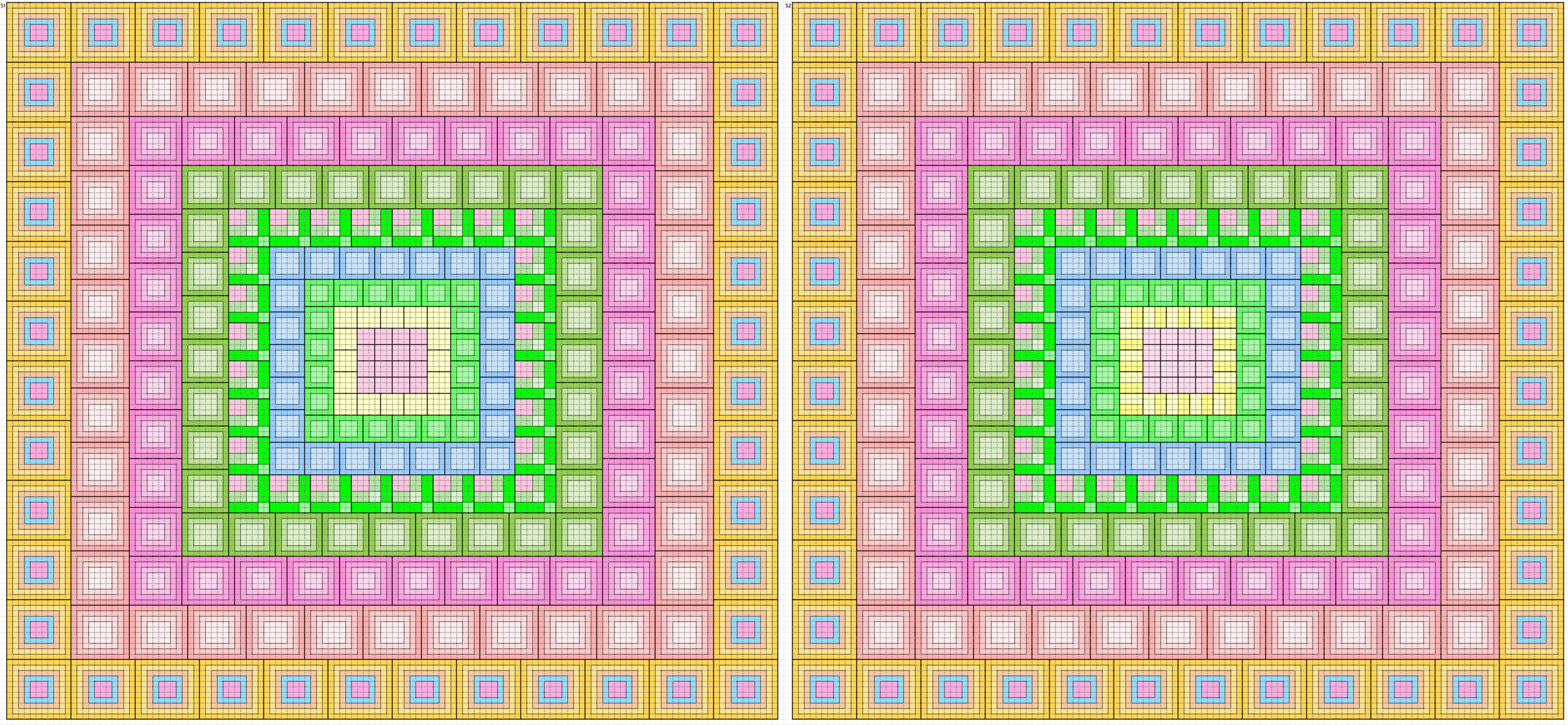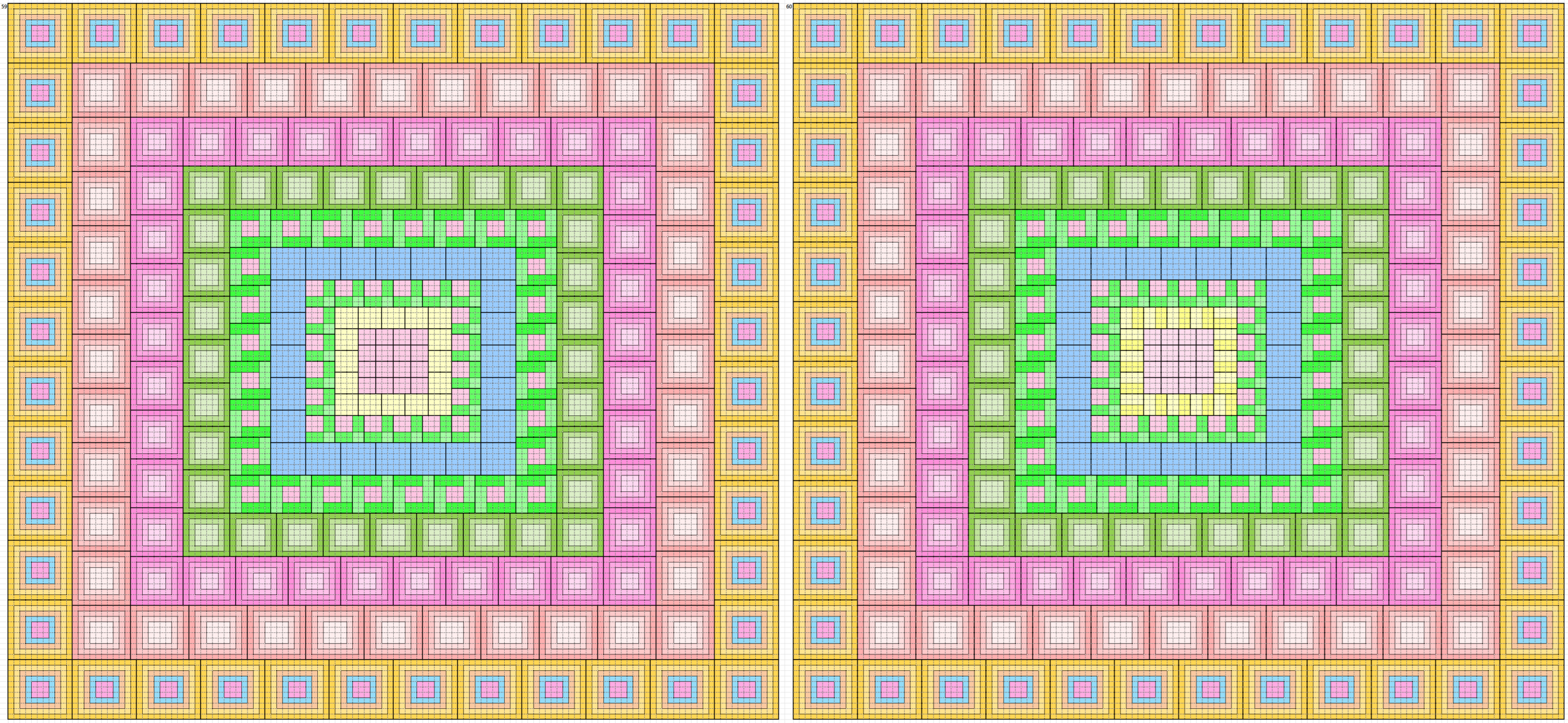 The above figure is up to order 110. See below the details of above multiple order bordered magic squares of order 110.