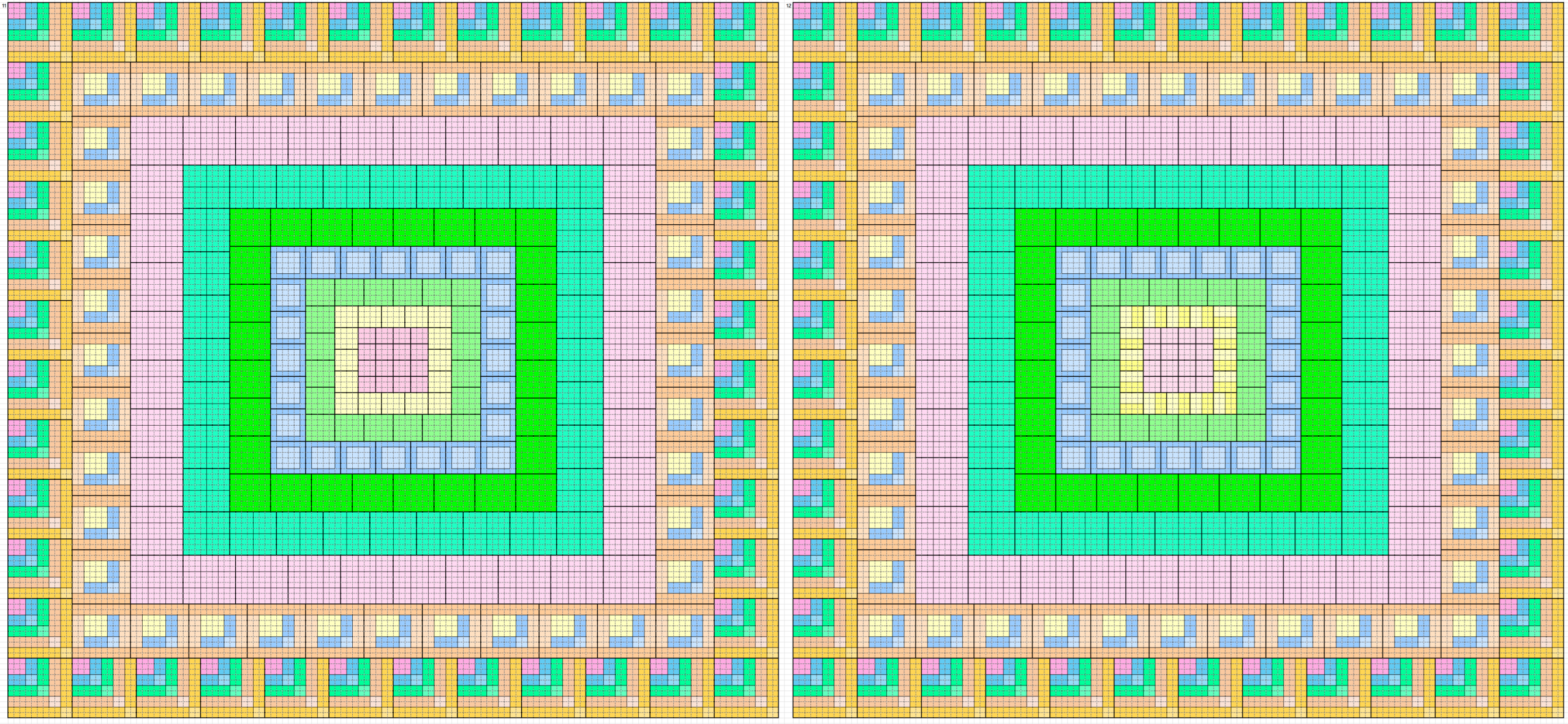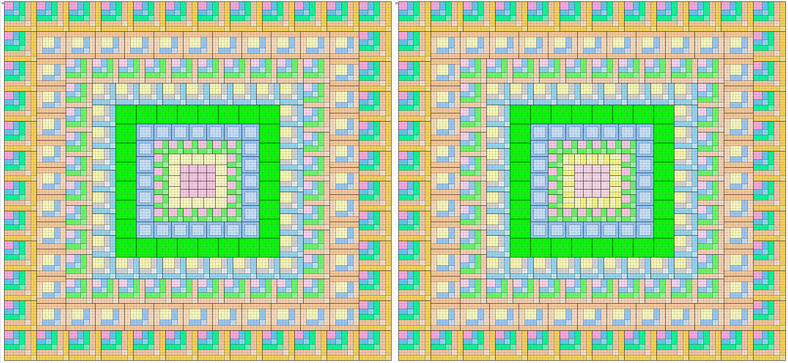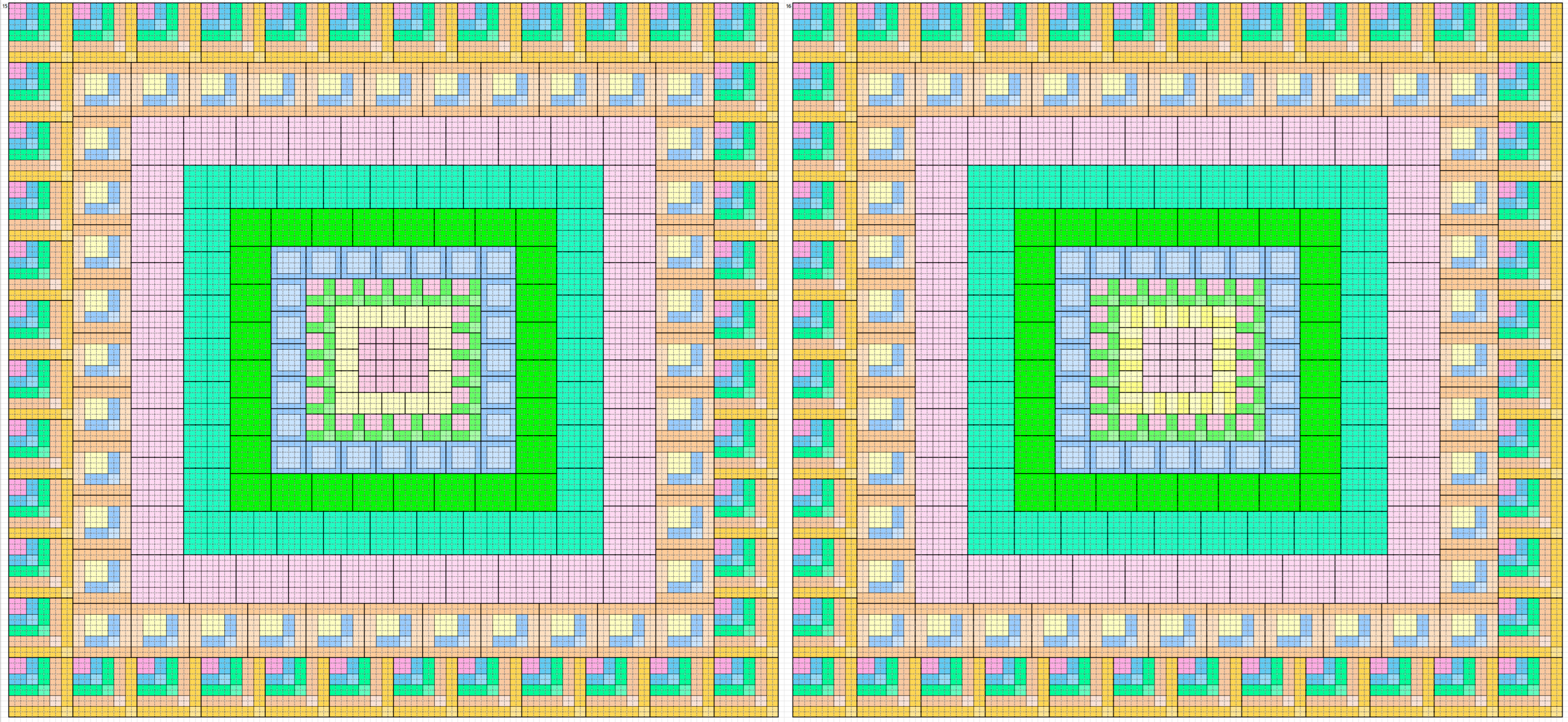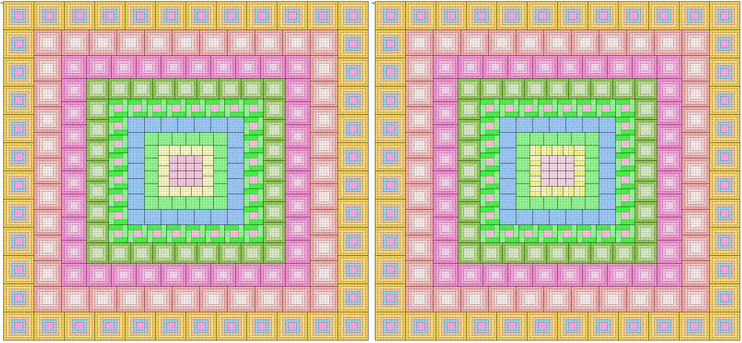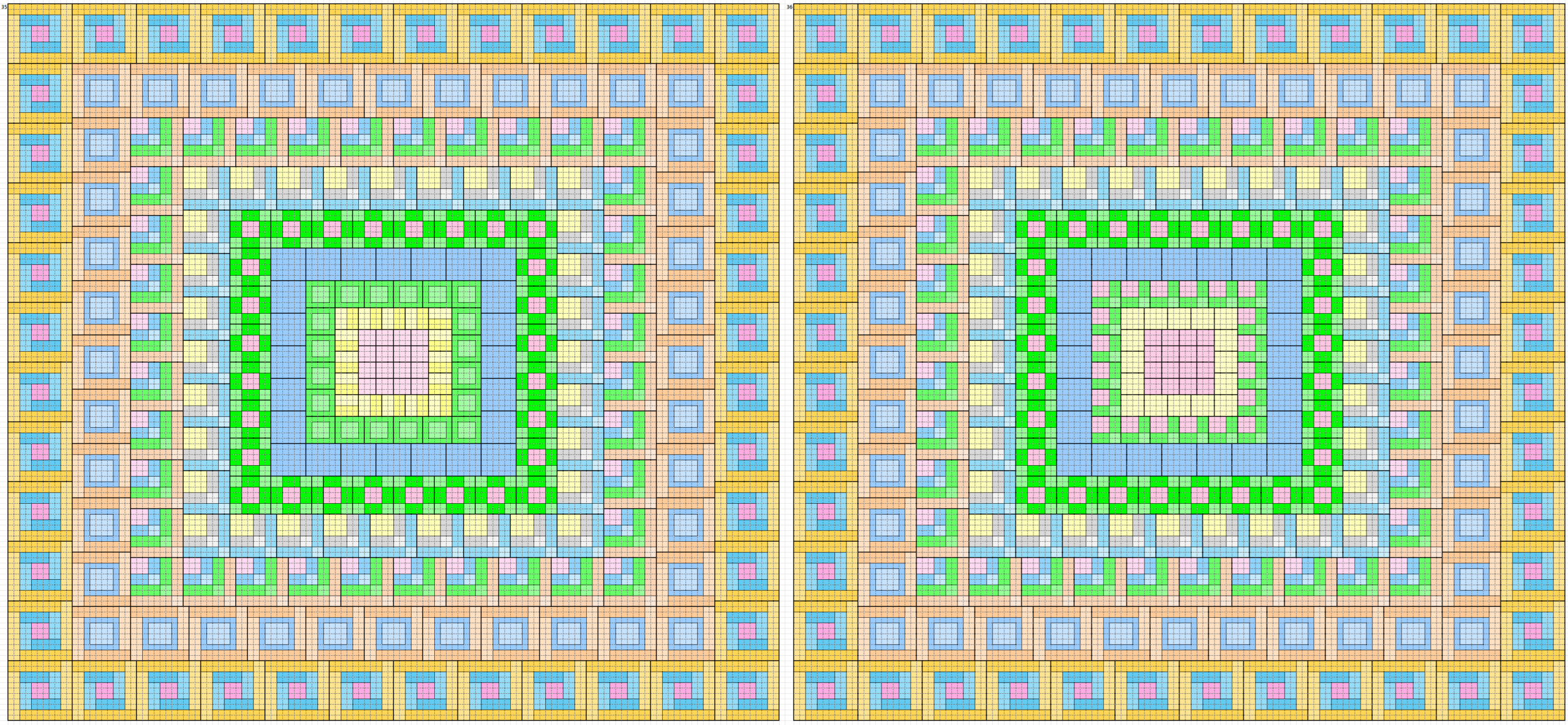 The above figure is up to order 110. See below the details of above multiple order bordered magic squares of order 110.