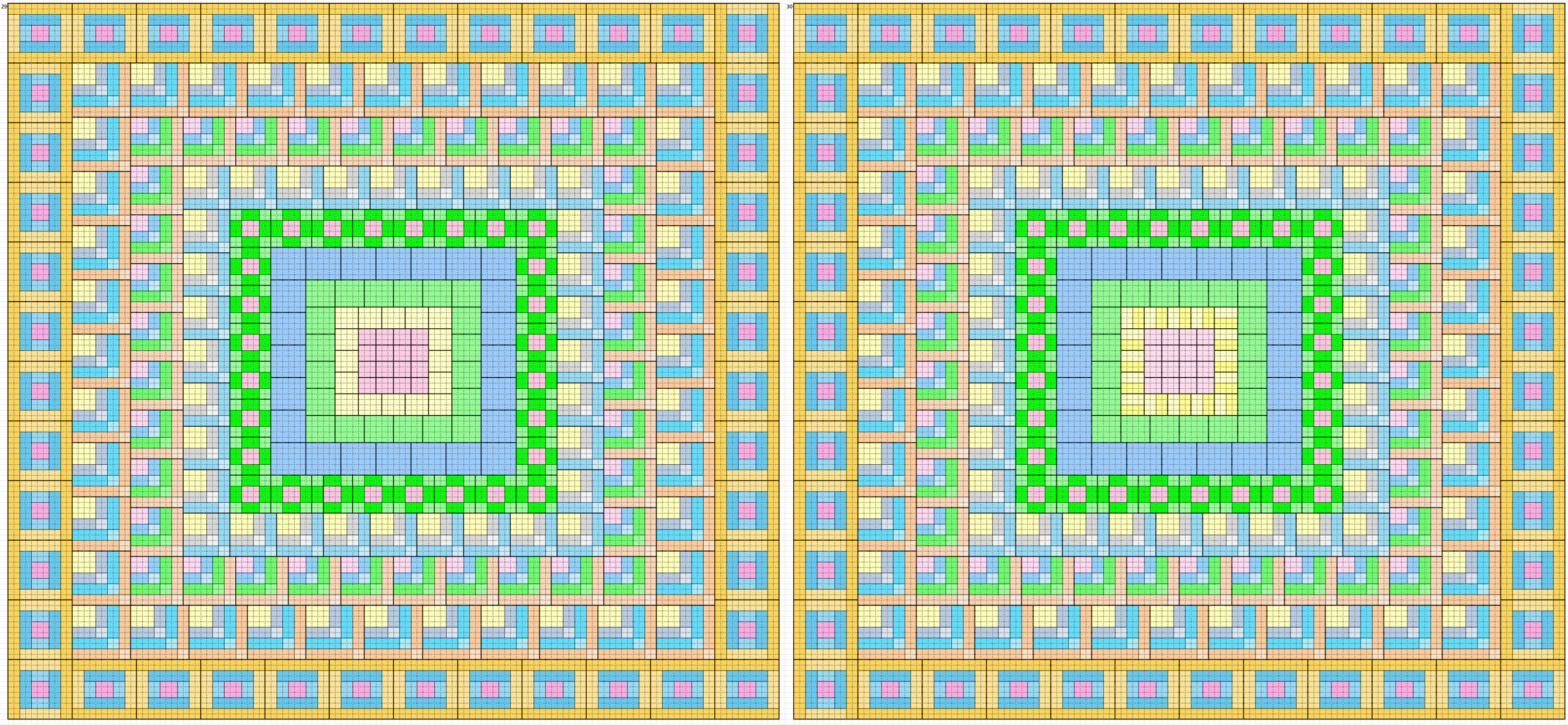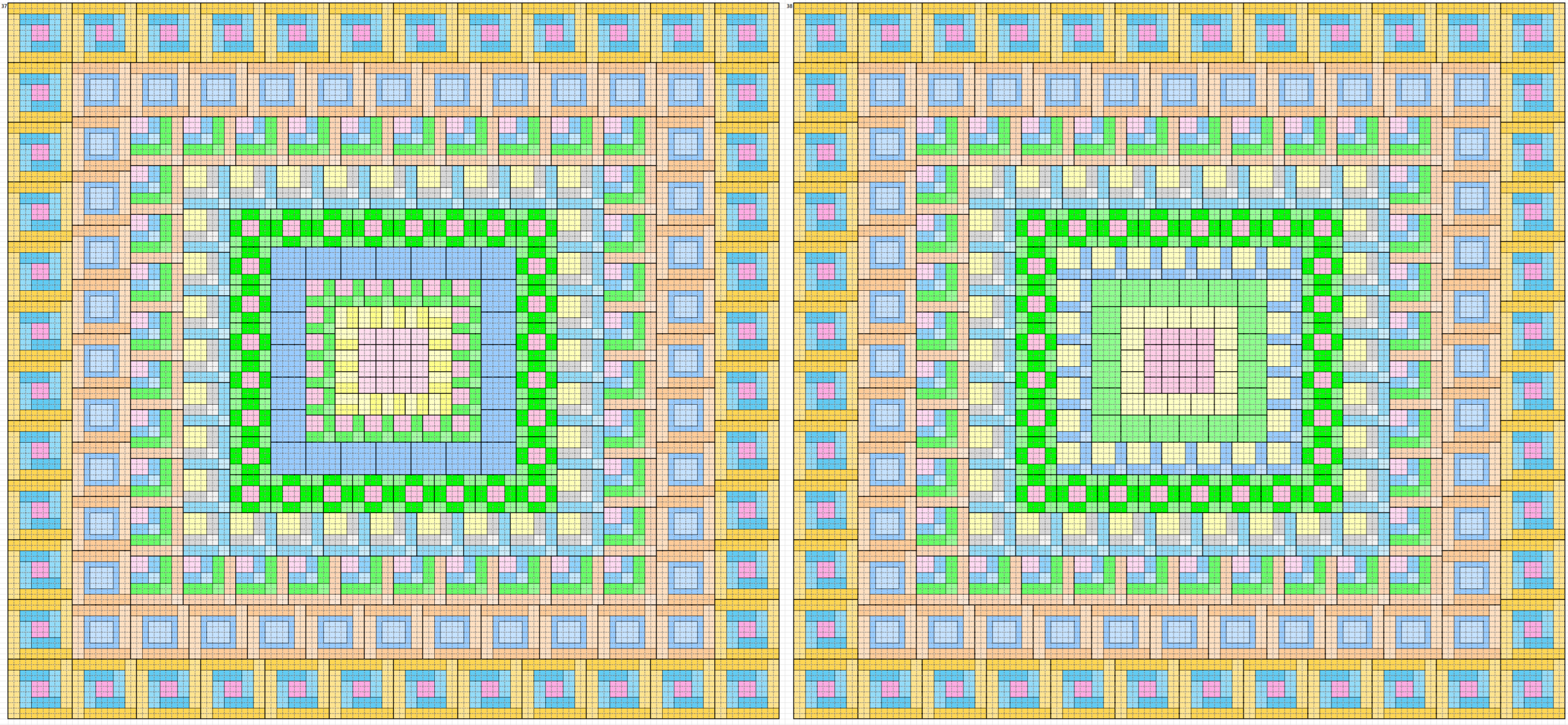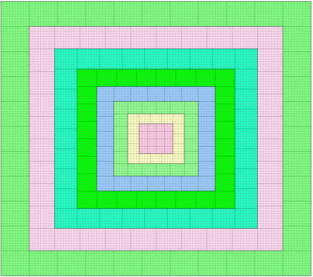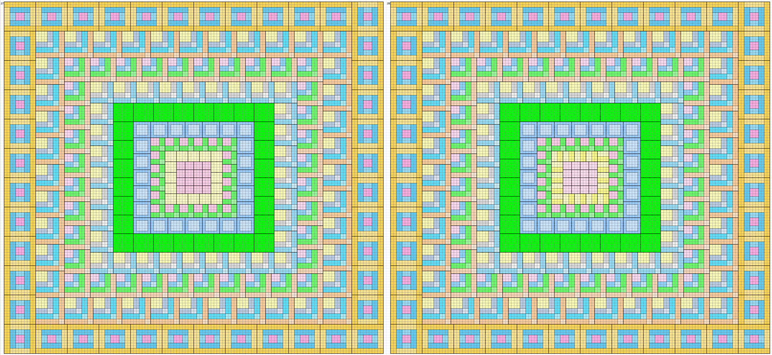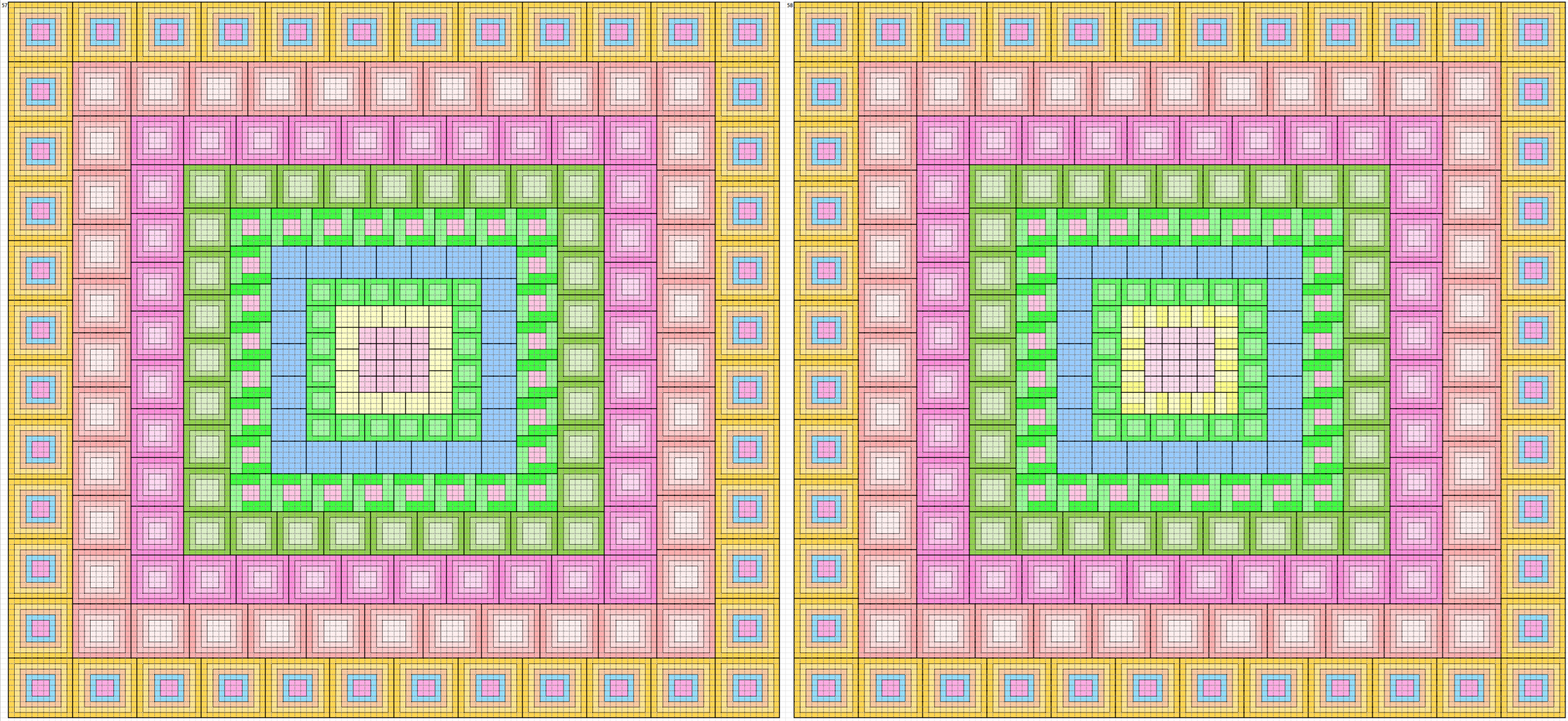 The above figure is up to order 110. See below the details of above multiple order bordered magic squares of order 110.