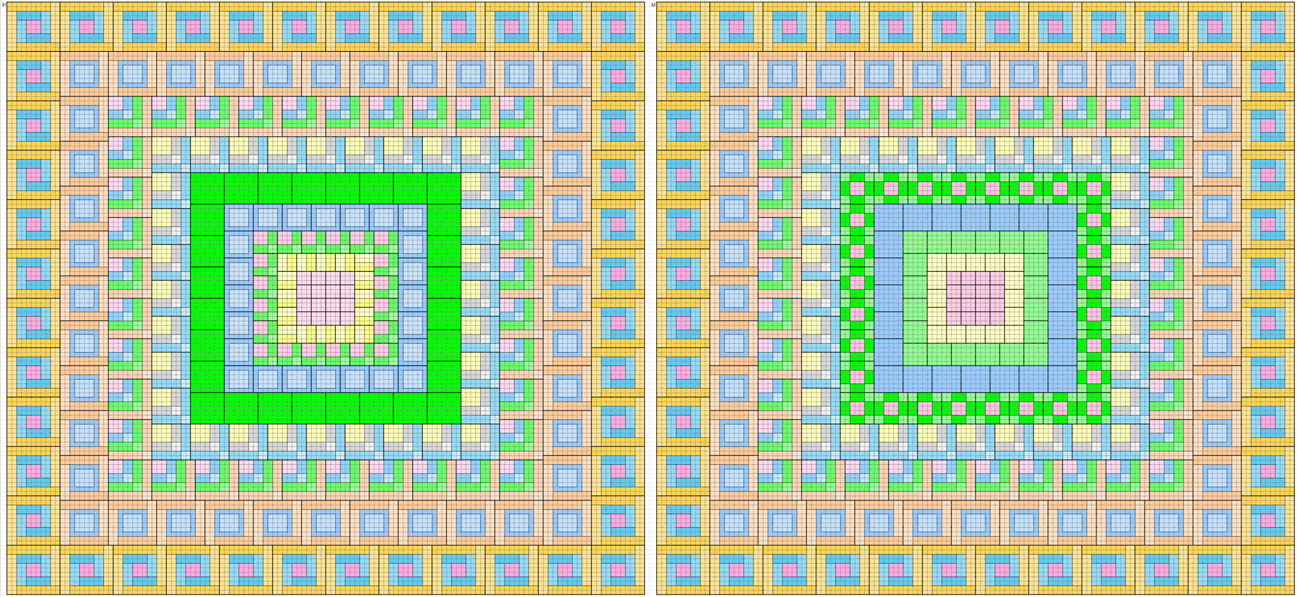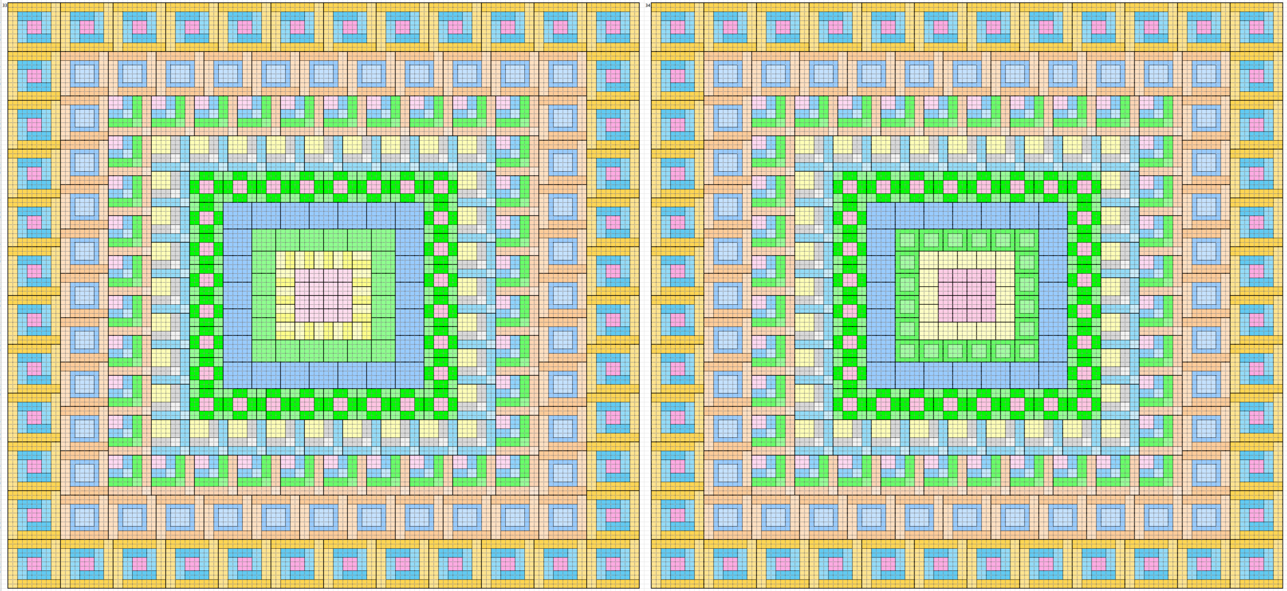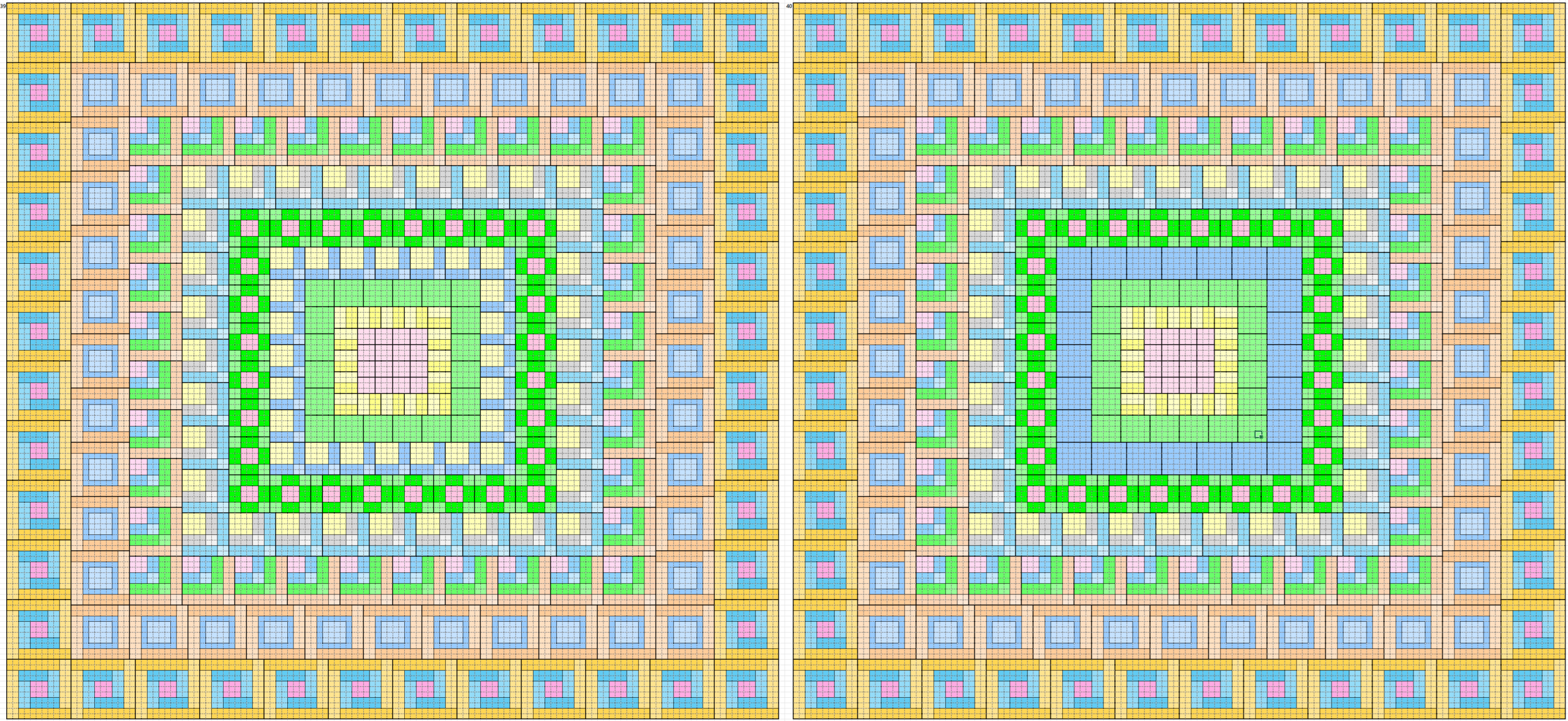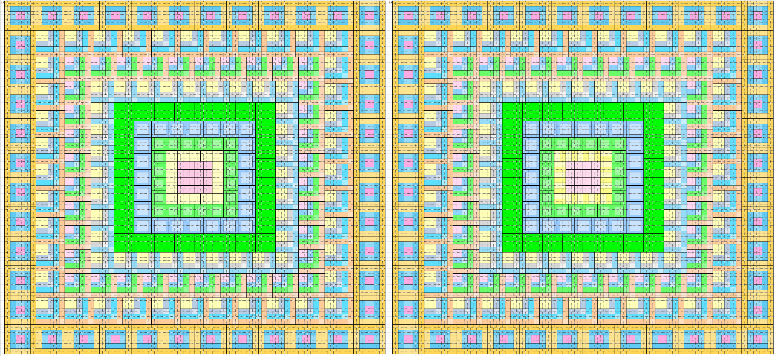 The above figure is up to order 110. See below the details of above multiple order bordered magic squares of order 110.