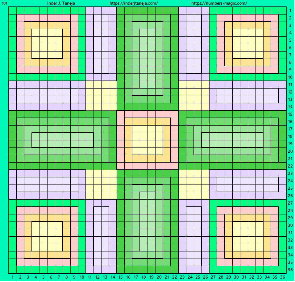 - Inder J. Taneja, Figured Magic Squares of Order 36 Using Bordered Magic Rectangles, Zenodo, December 27, 2022, pp. 1-140, https://doi.org/10.5281/zenodo.7486548.