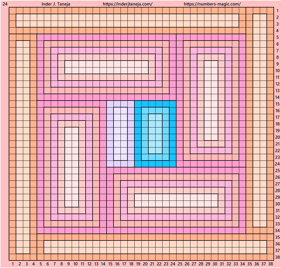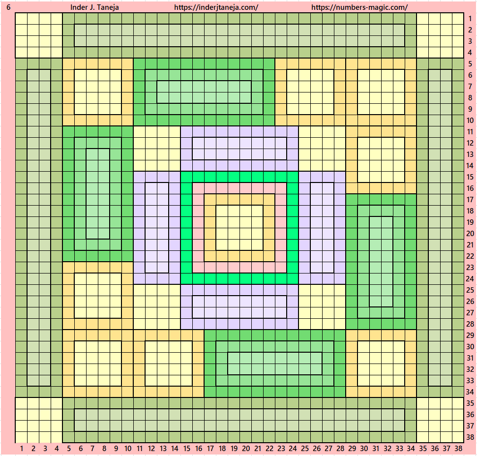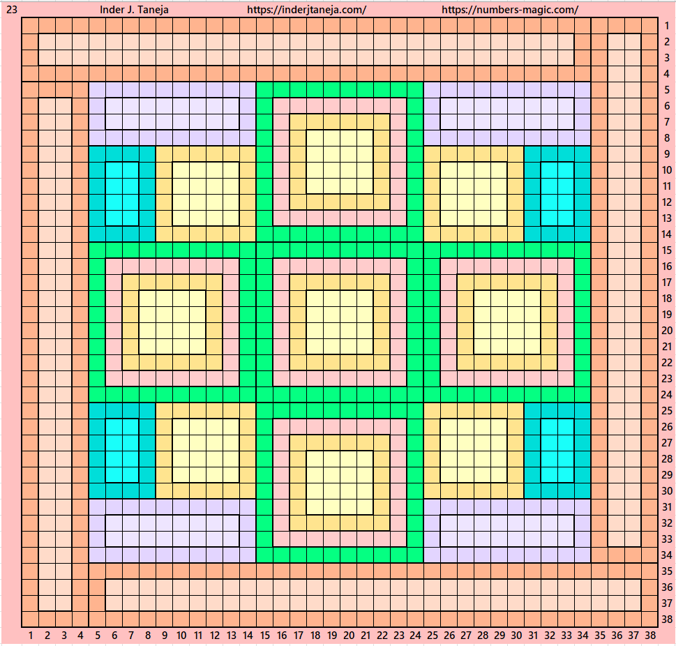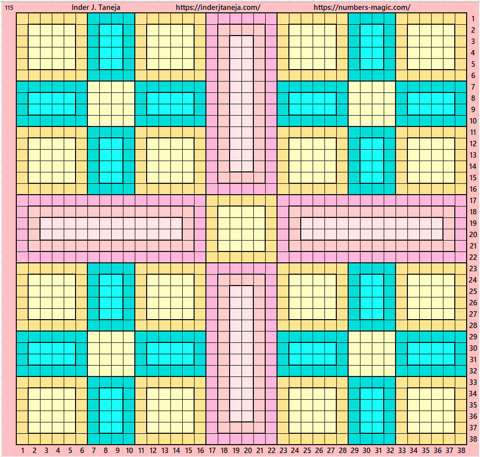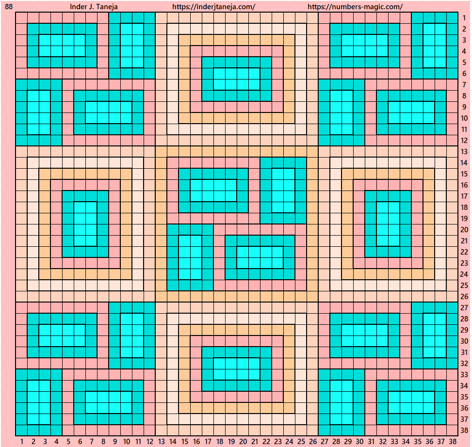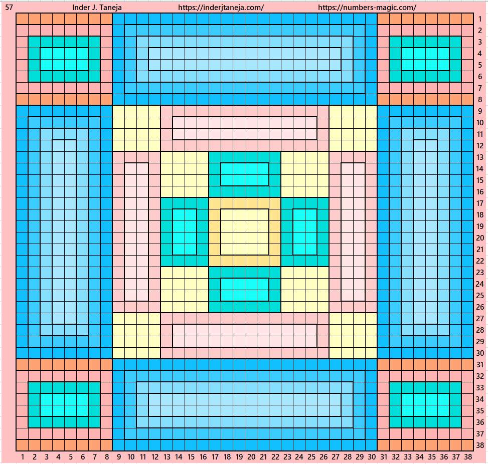 - Inder J. Taneja, Figured Magic Squares of Order 38 Using Bordered Magic Rectangles, Zenodo, January 03, 2023, pp. 1-133, https://doi.org/10.5281/zenodo.7500188.