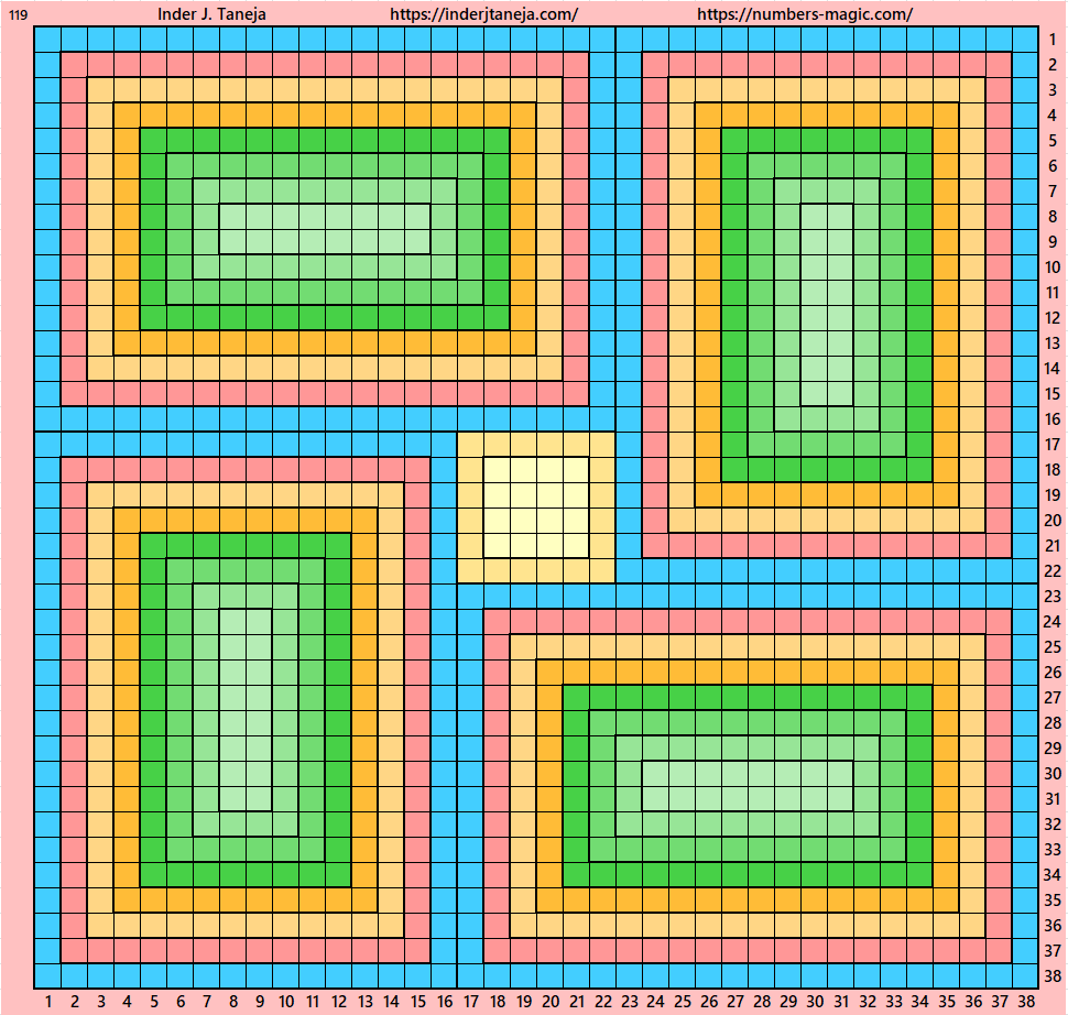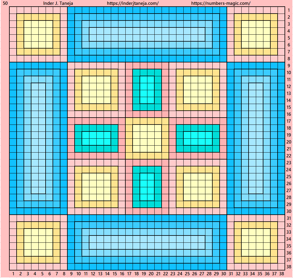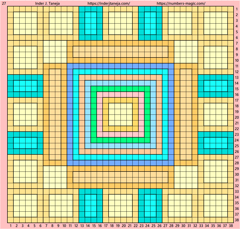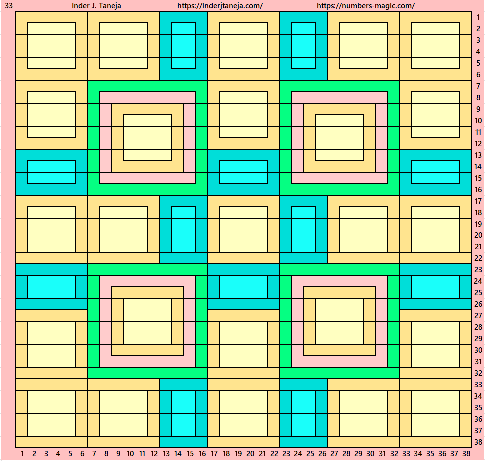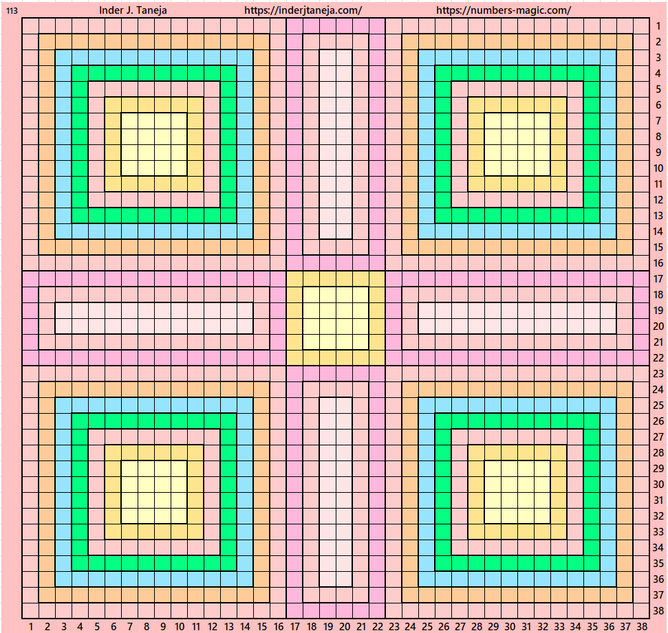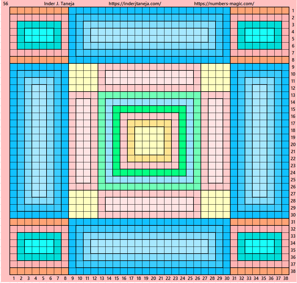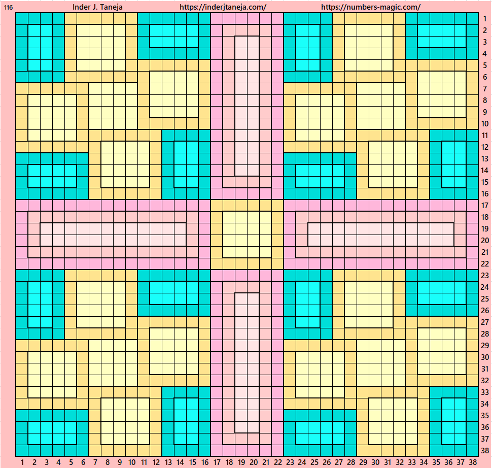 - Inder J. Taneja, Figured Magic Squares of Order 38 Using Bordered Magic Rectangles, Zenodo, January 03, 2023, pp. 1-133, https://doi.org/10.5281/zenodo.7500188.