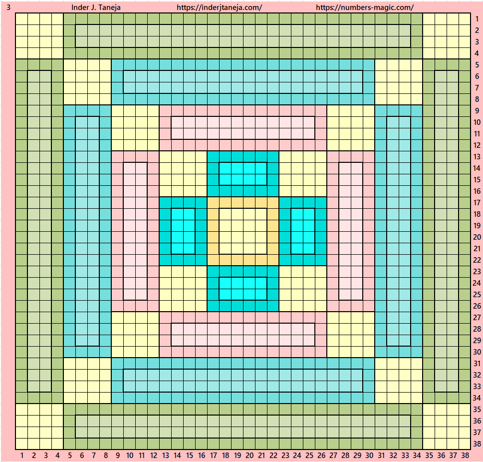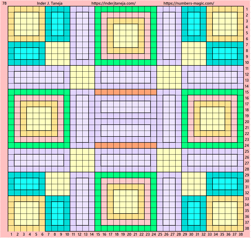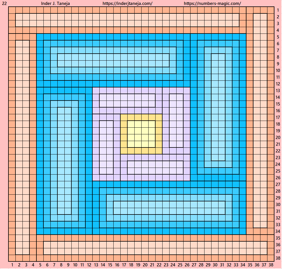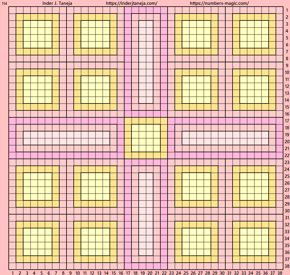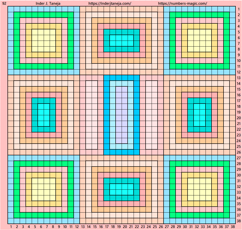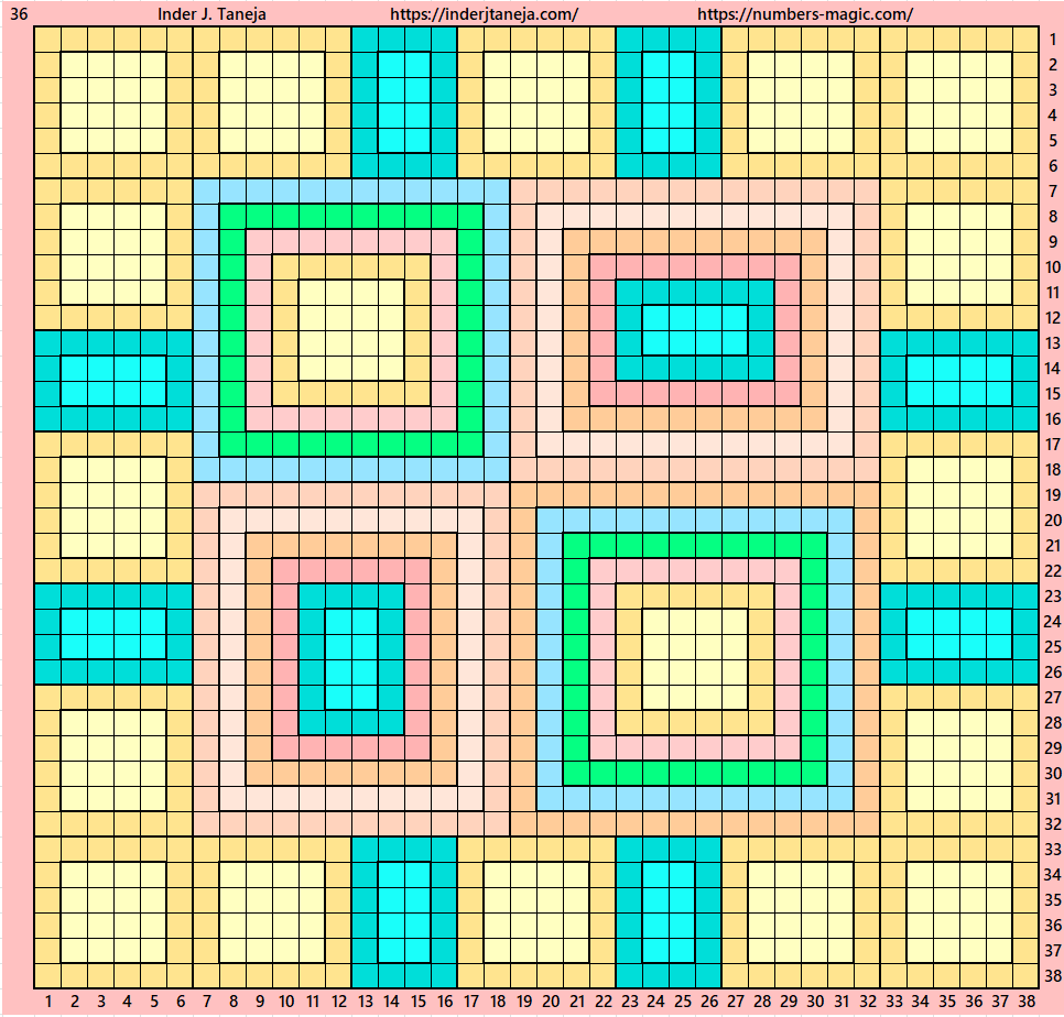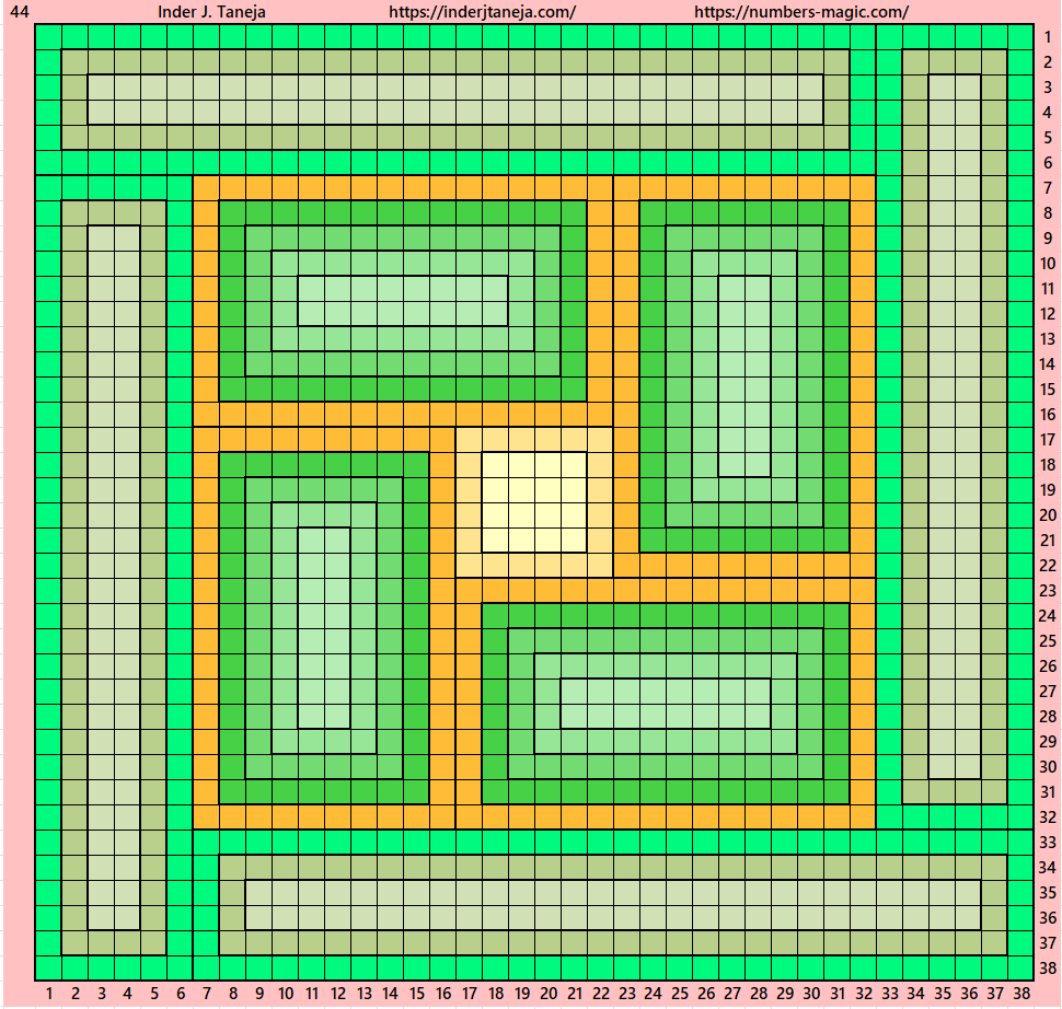 - Inder J. Taneja, Figured Magic Squares of Order 38 Using Bordered Magic Rectangles, Zenodo, January 03, 2023, pp. 1-133, https://doi.org/10.5281/zenodo.7500188.