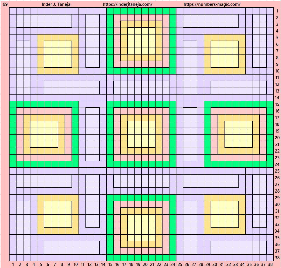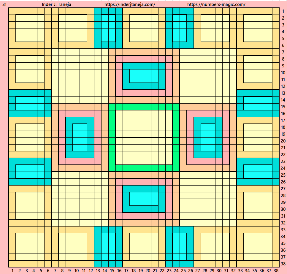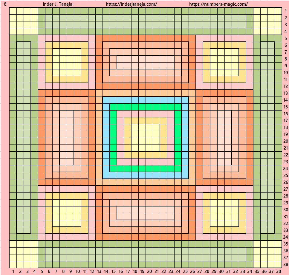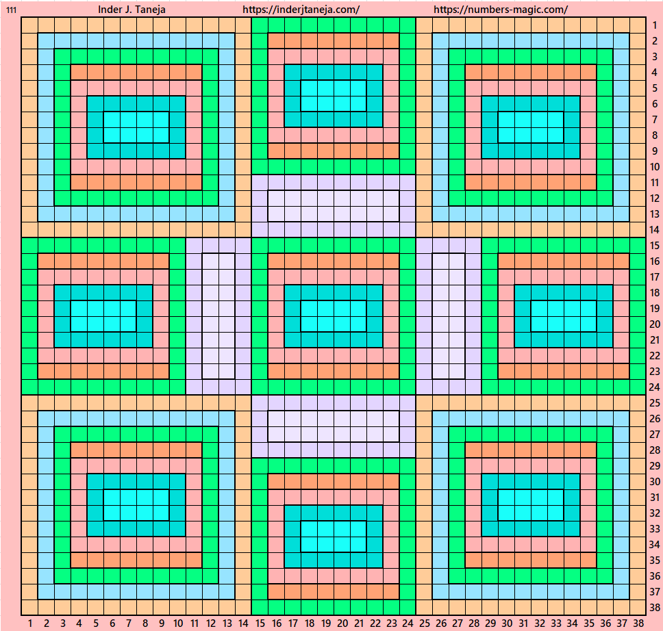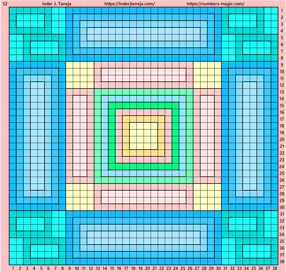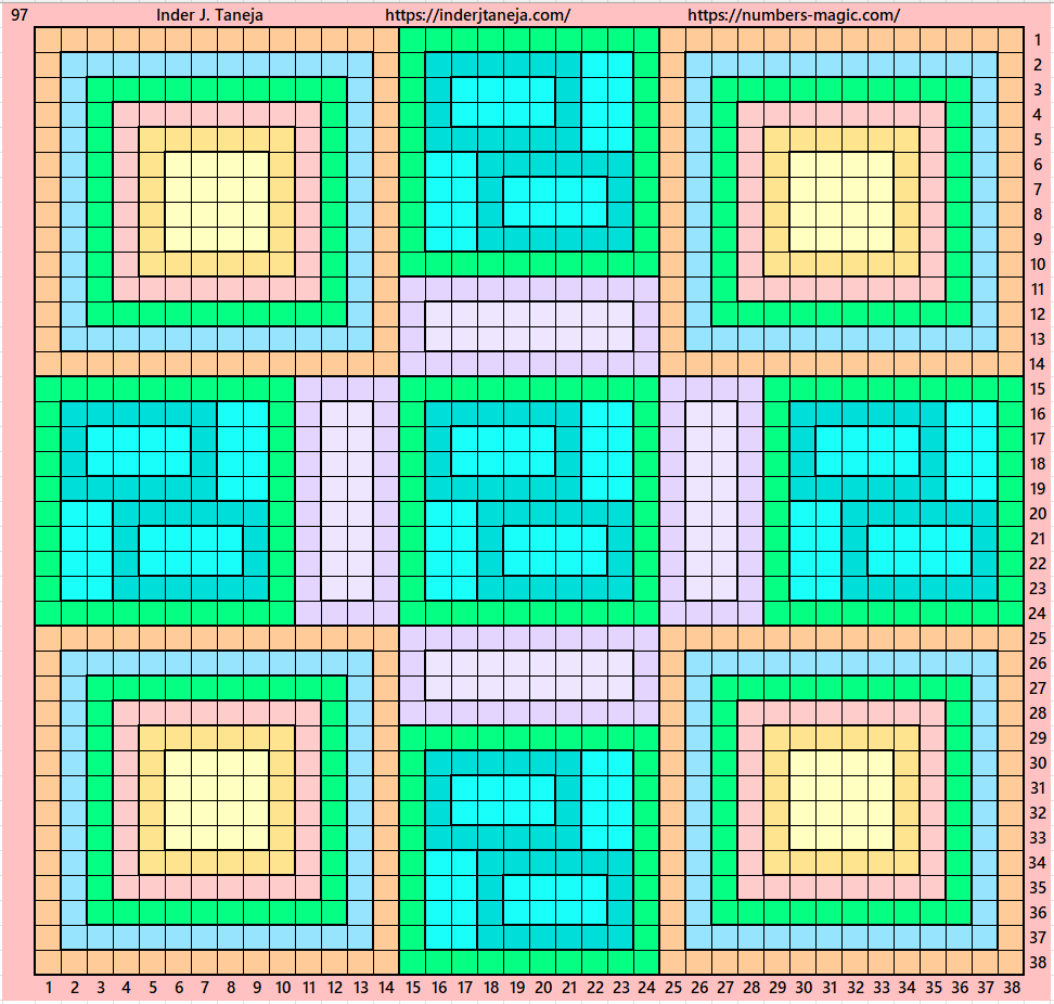 - Inder J. Taneja, Figured Magic Squares of Order 38 Using Bordered Magic Rectangles, Zenodo, January 03, 2023, pp. 1-133, https://doi.org/10.5281/zenodo.7500188.
