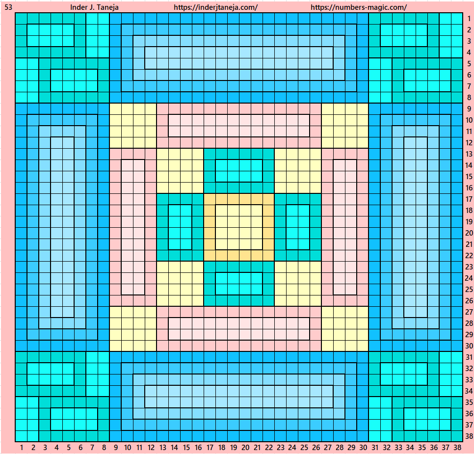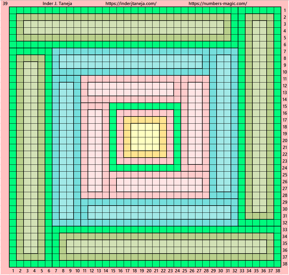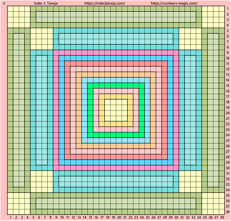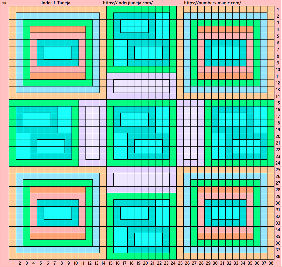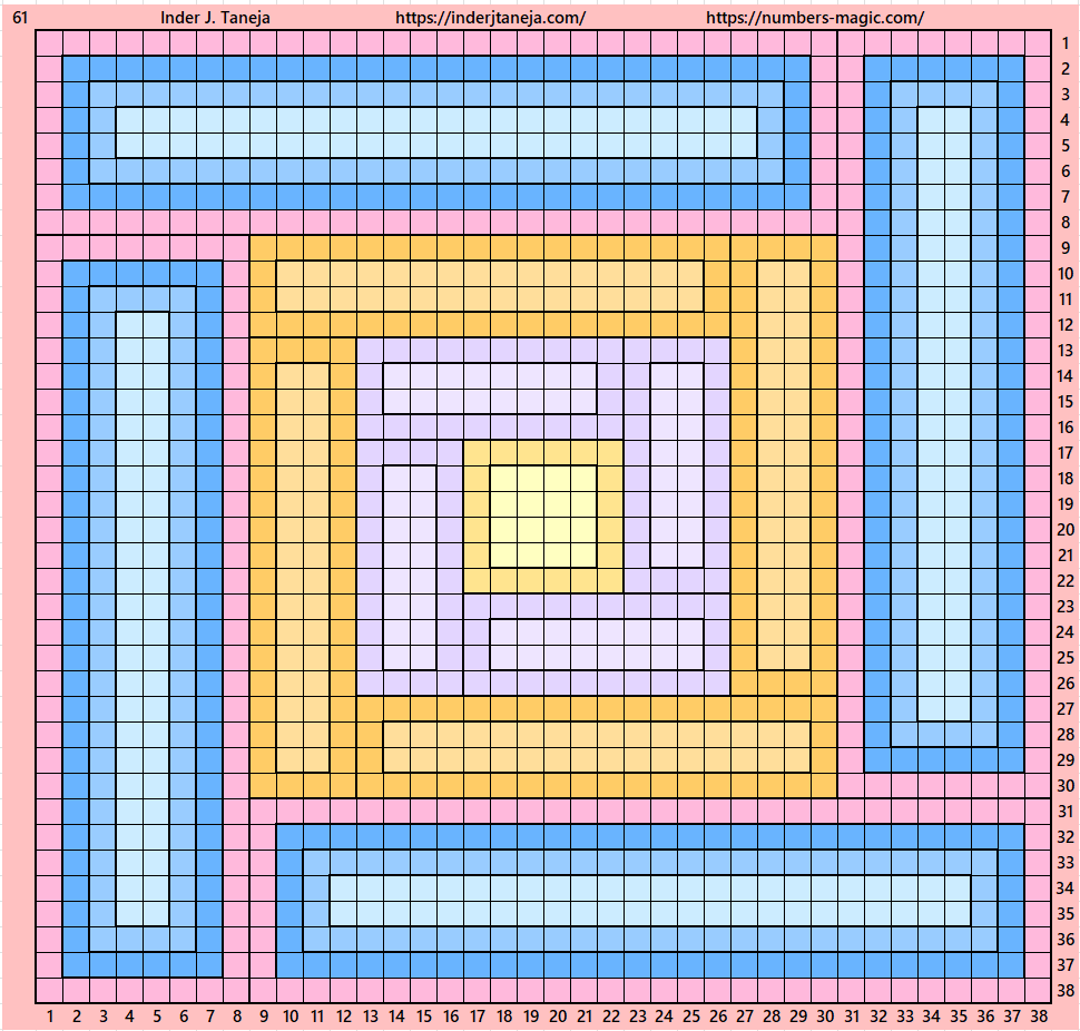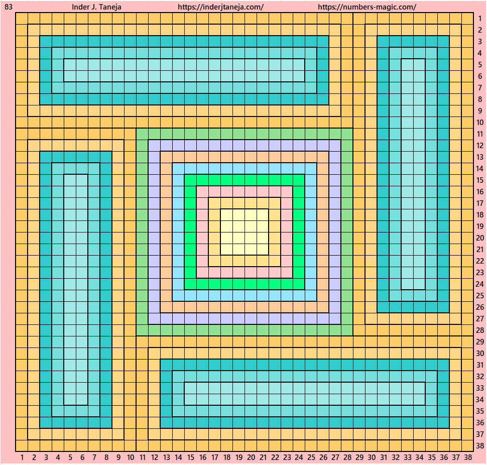 - Inder J. Taneja, Figured Magic Squares of Order 38 Using Bordered Magic Rectangles, Zenodo, January 03, 2023, pp. 1-133, https://doi.org/10.5281/zenodo.7500188.