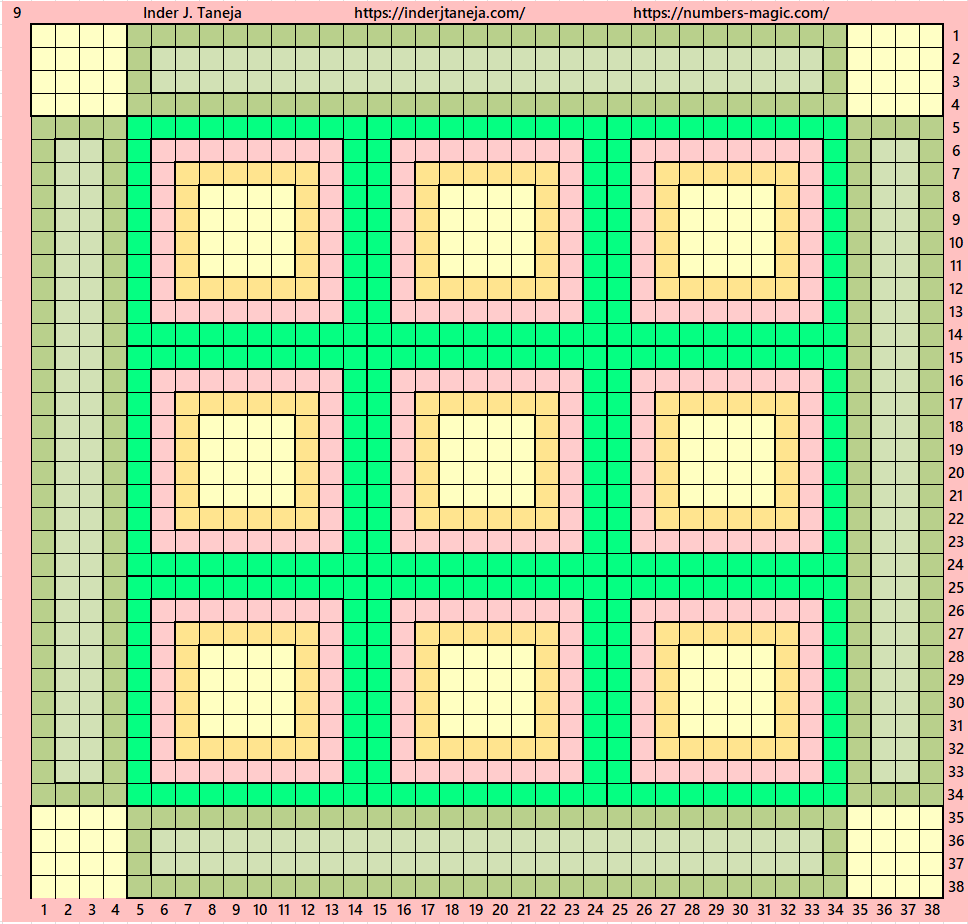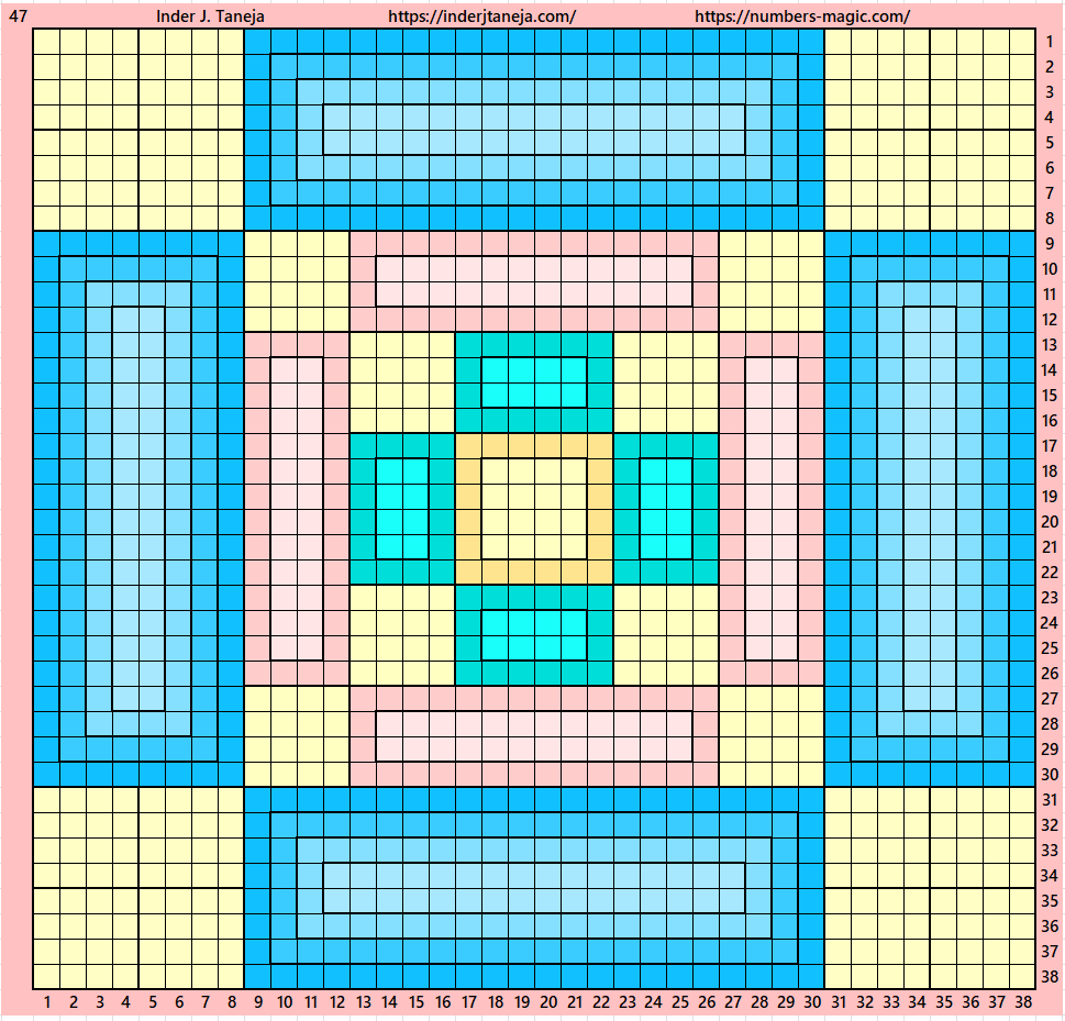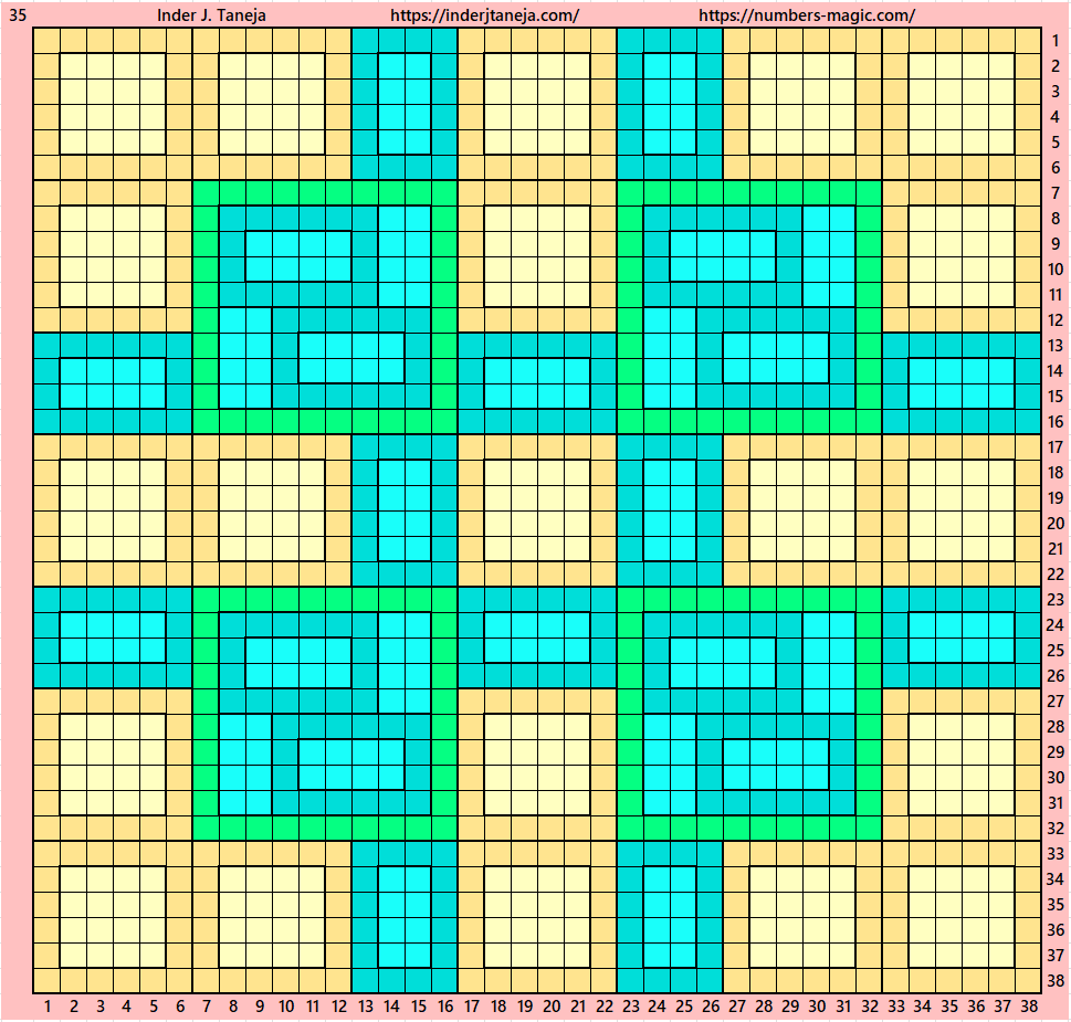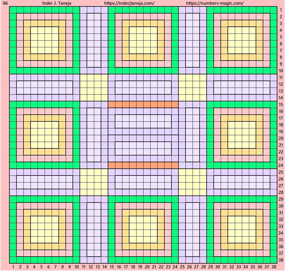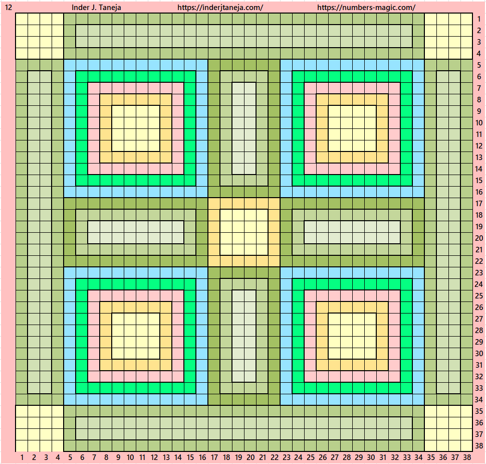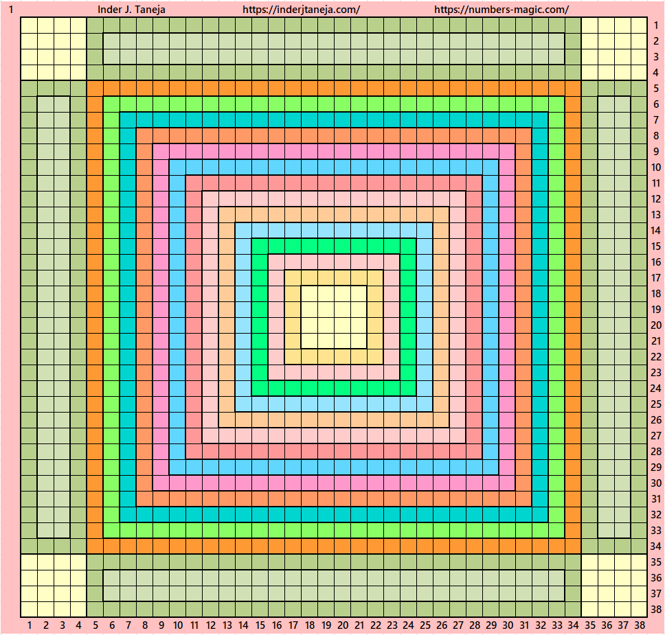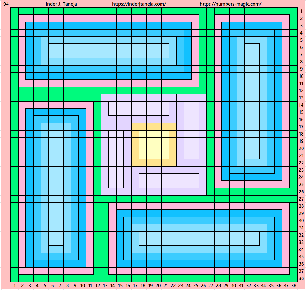 - Inder J. Taneja, Figured Magic Squares of Order 38 Using Bordered Magic Rectangles, Zenodo, January 03, 2023, pp. 1-133, https://doi.org/10.5281/zenodo.7500188.