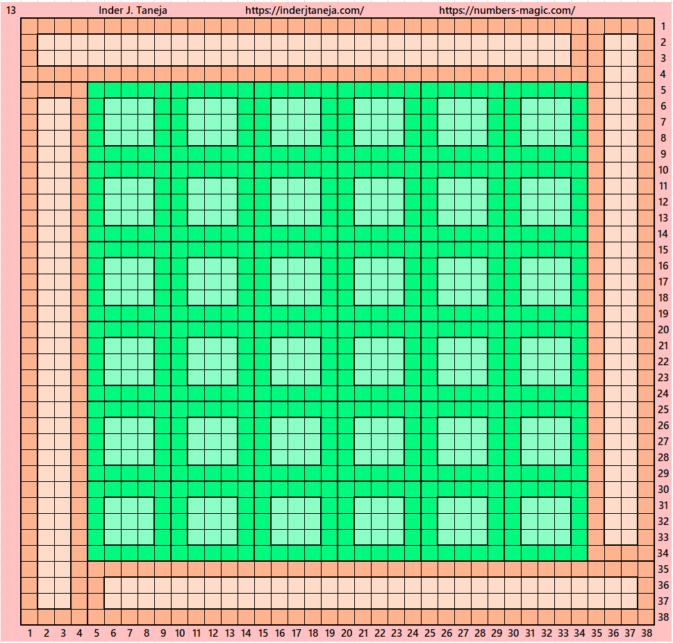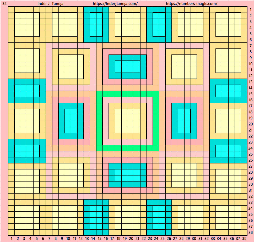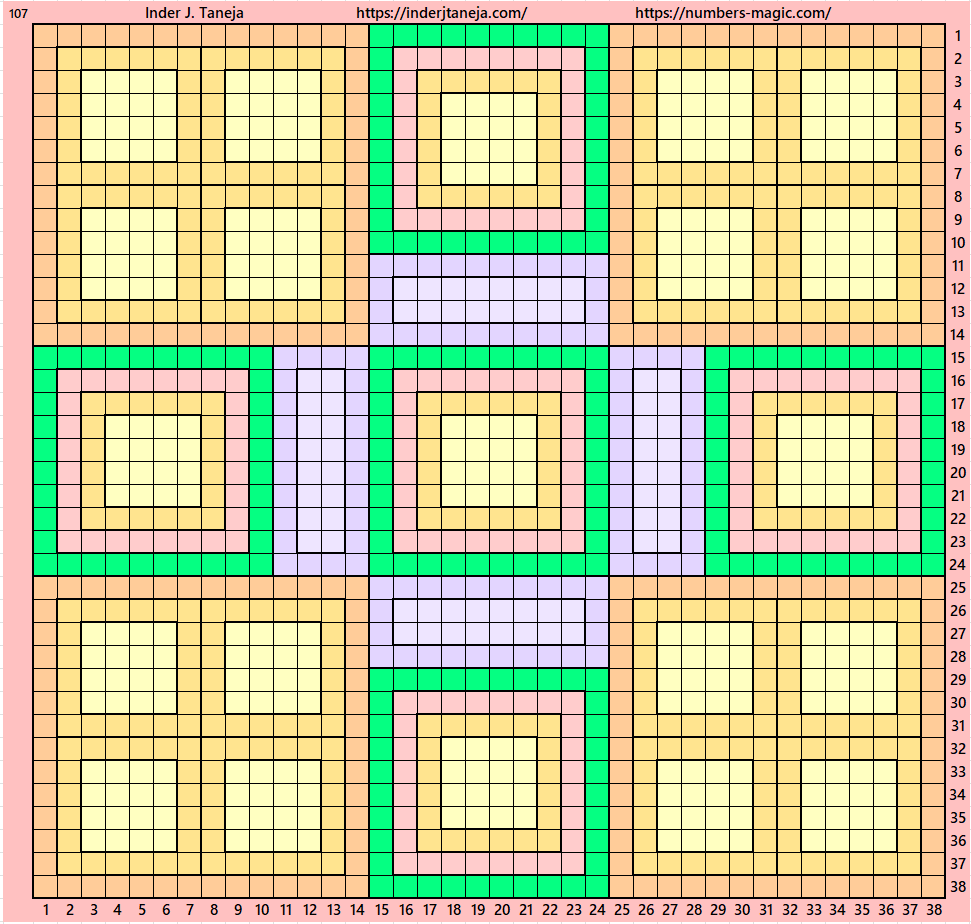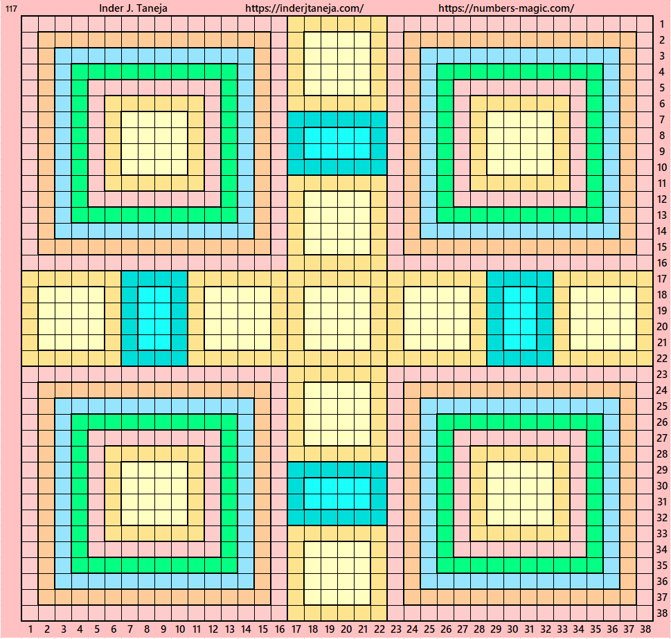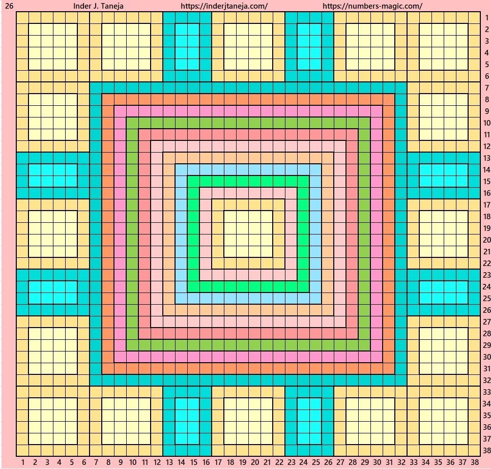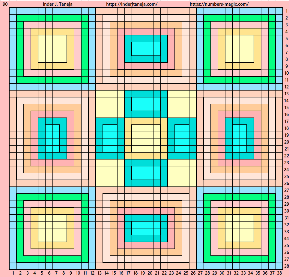 - Inder J. Taneja, Figured Magic Squares of Order 38 Using Bordered Magic Rectangles, Zenodo, January 03, 2023, pp. 1-133, https://doi.org/10.5281/zenodo.7500188.