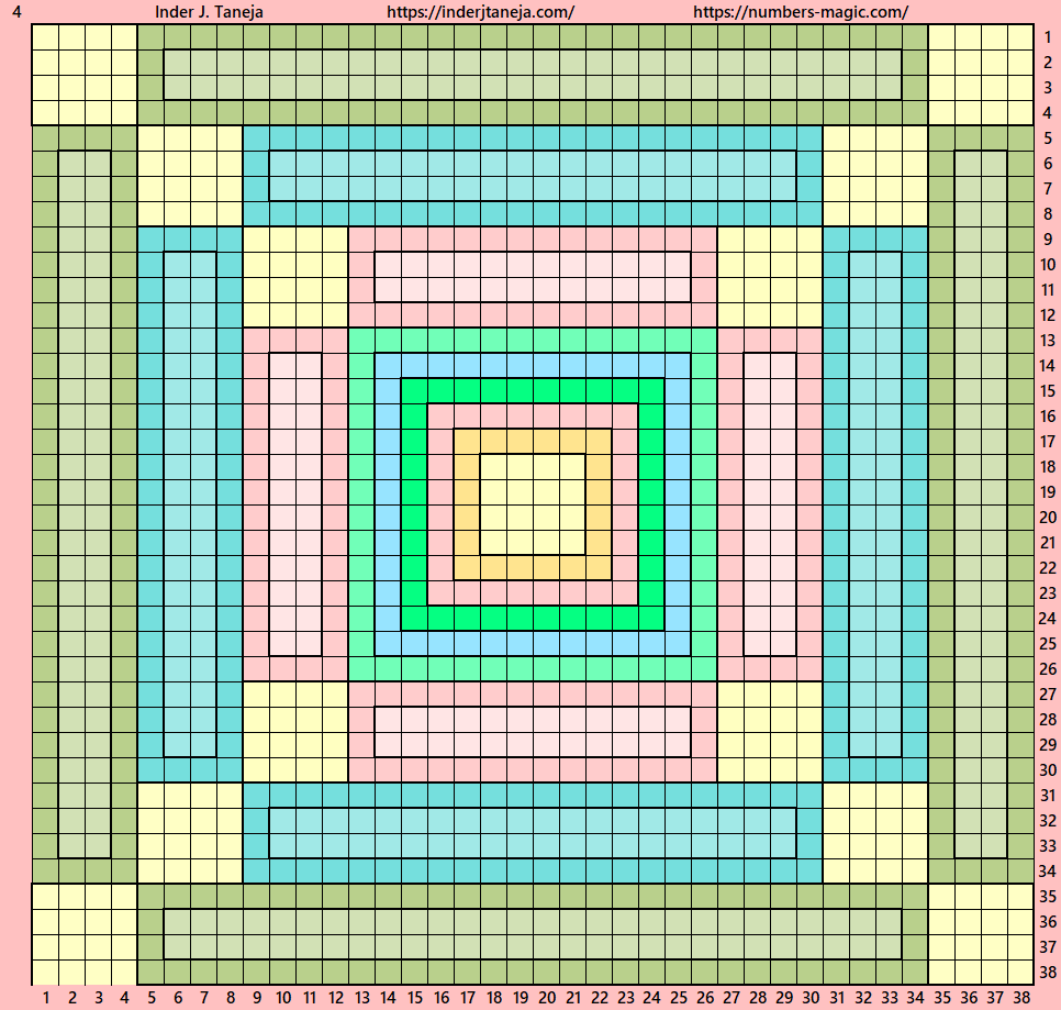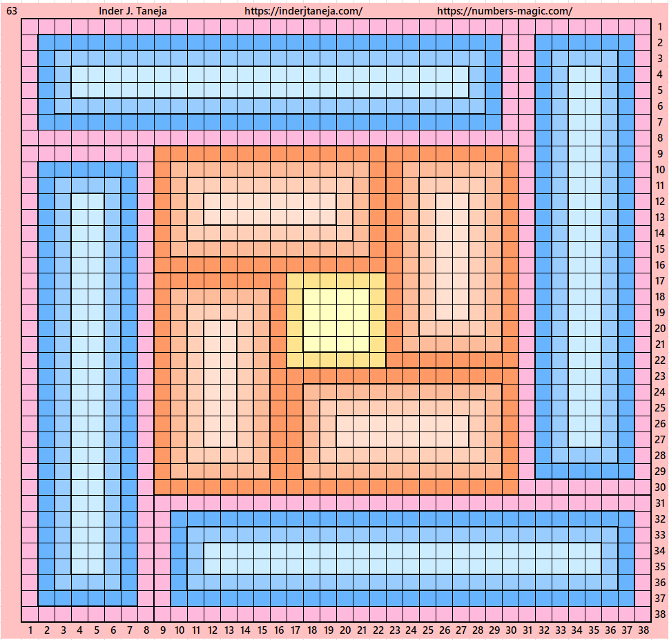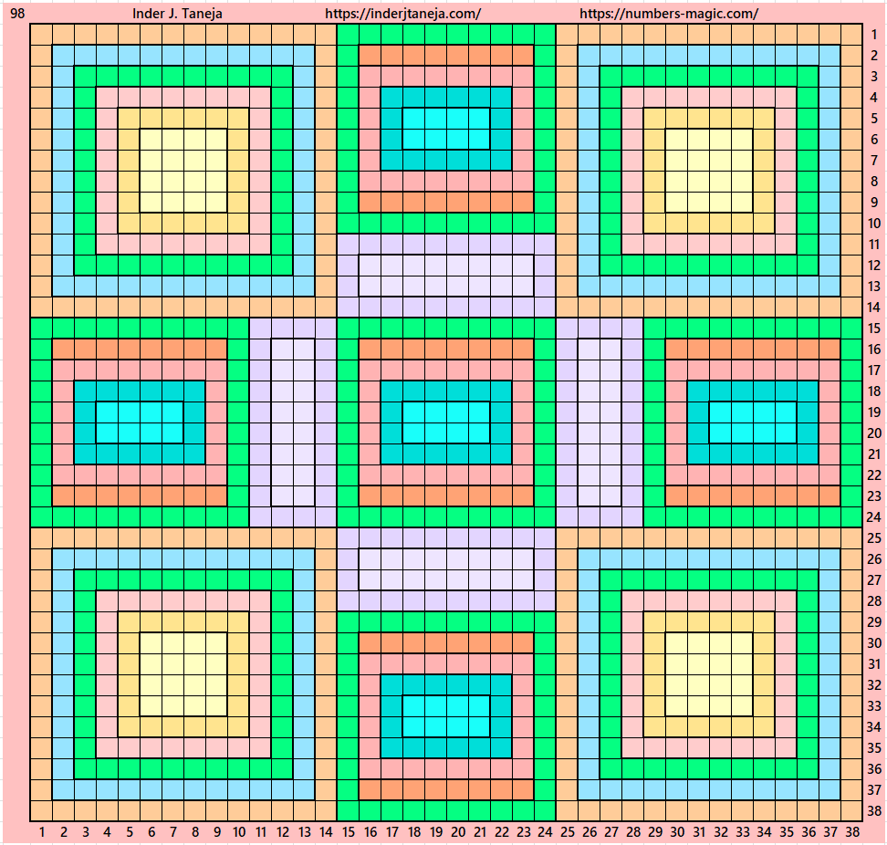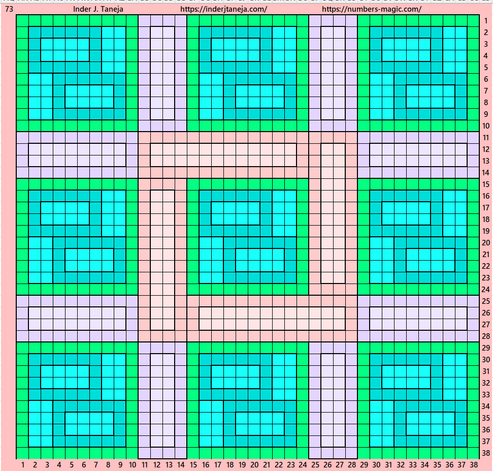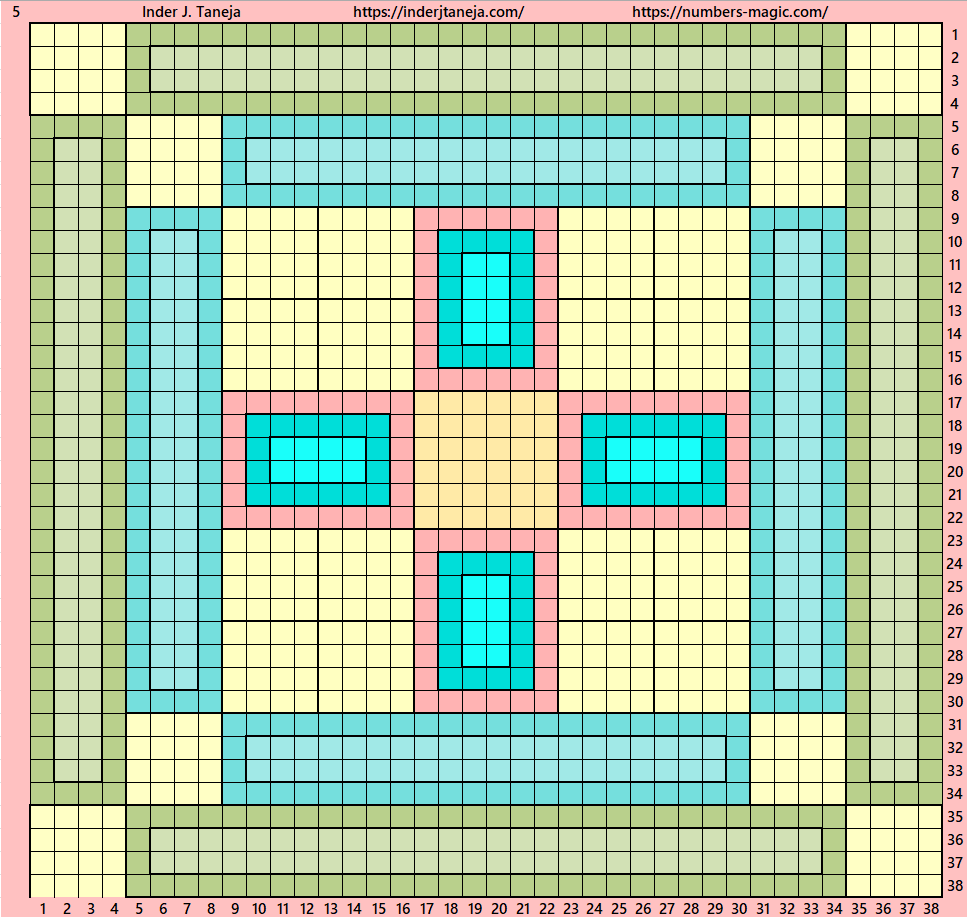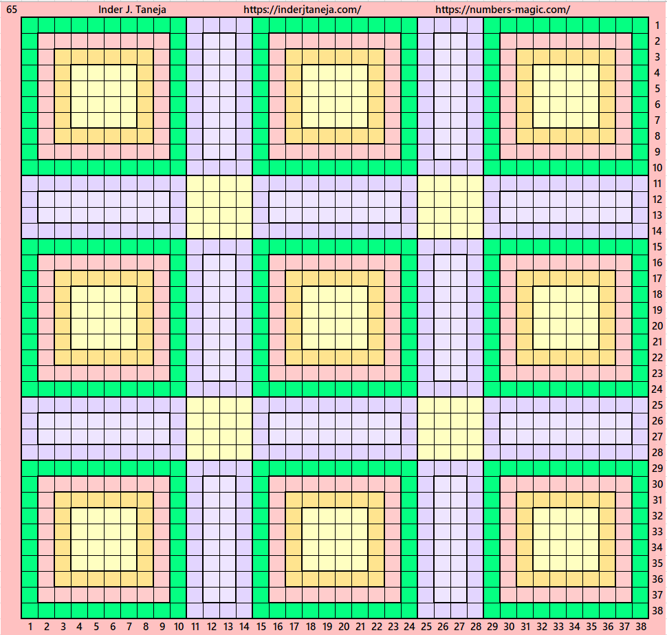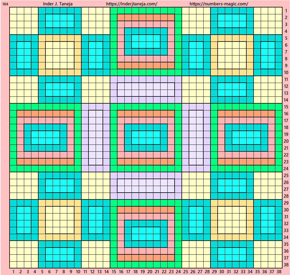 - Inder J. Taneja, Figured Magic Squares of Order 38 Using Bordered Magic Rectangles, Zenodo, January 03, 2023, pp. 1-133, https://doi.org/10.5281/zenodo.7500188.
