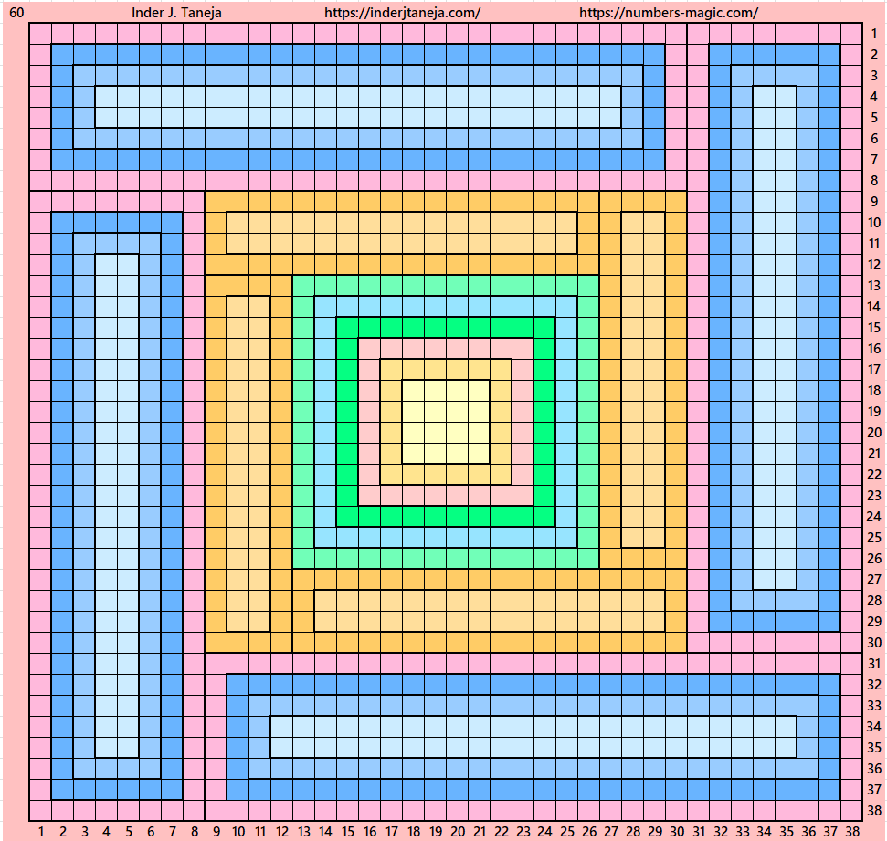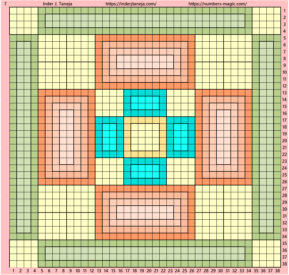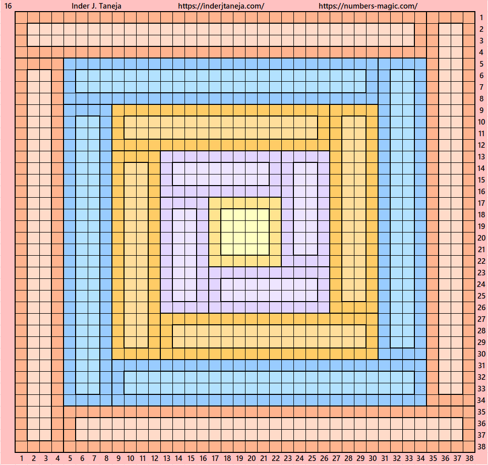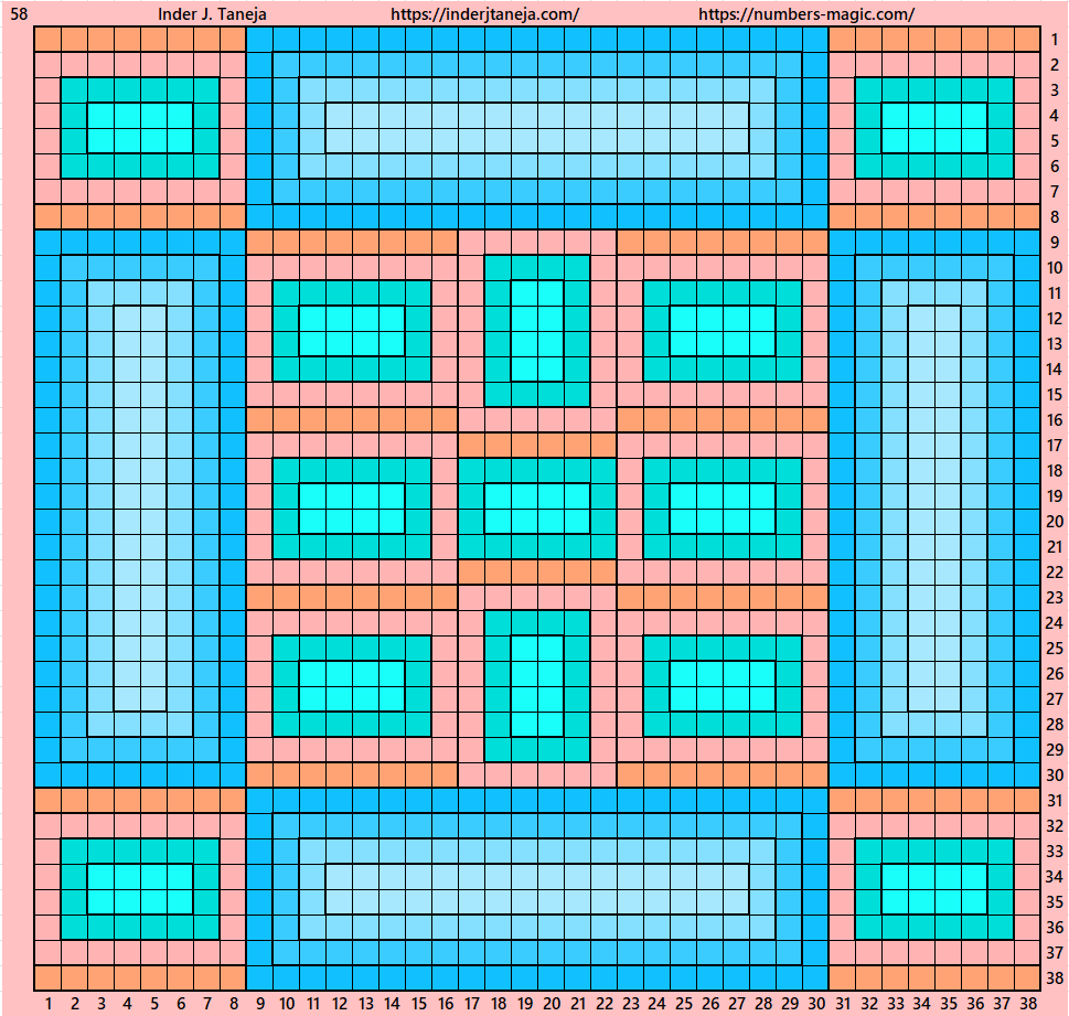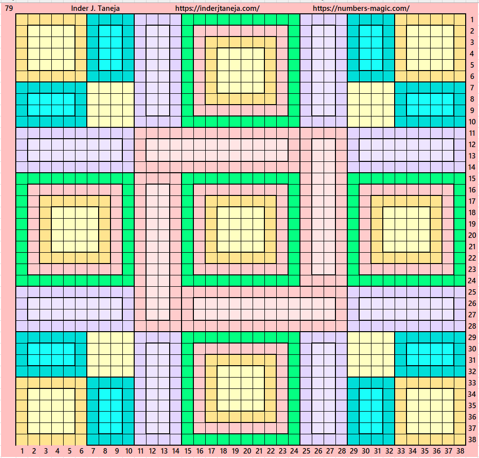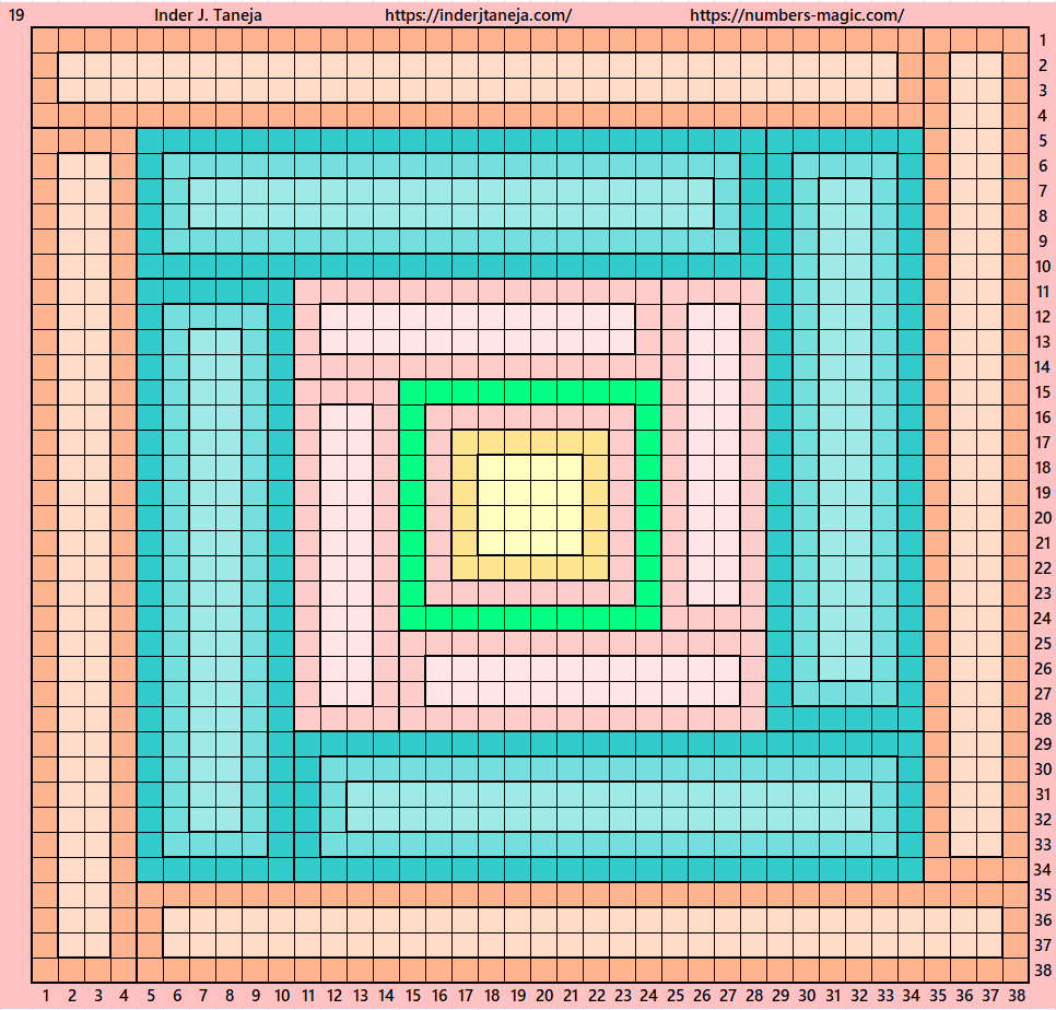 - Inder J. Taneja, Figured Magic Squares of Order 38 Using Bordered Magic Rectangles, Zenodo, January 03, 2023, pp. 1-133, https://doi.org/10.5281/zenodo.7500188.