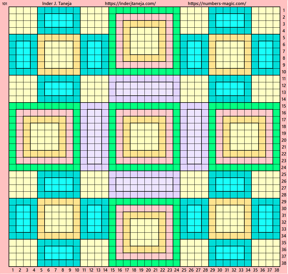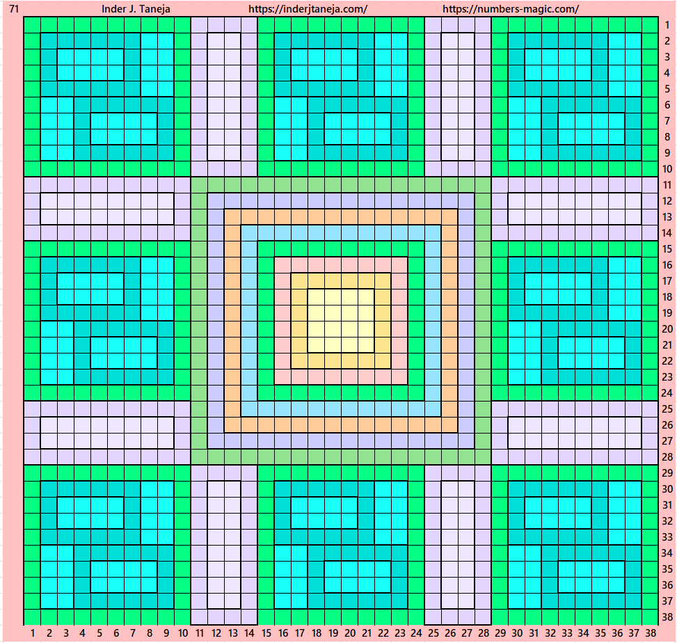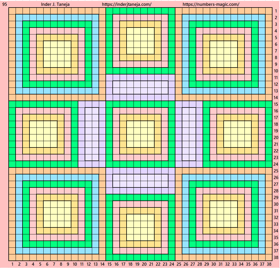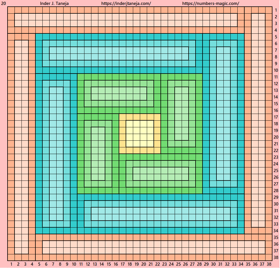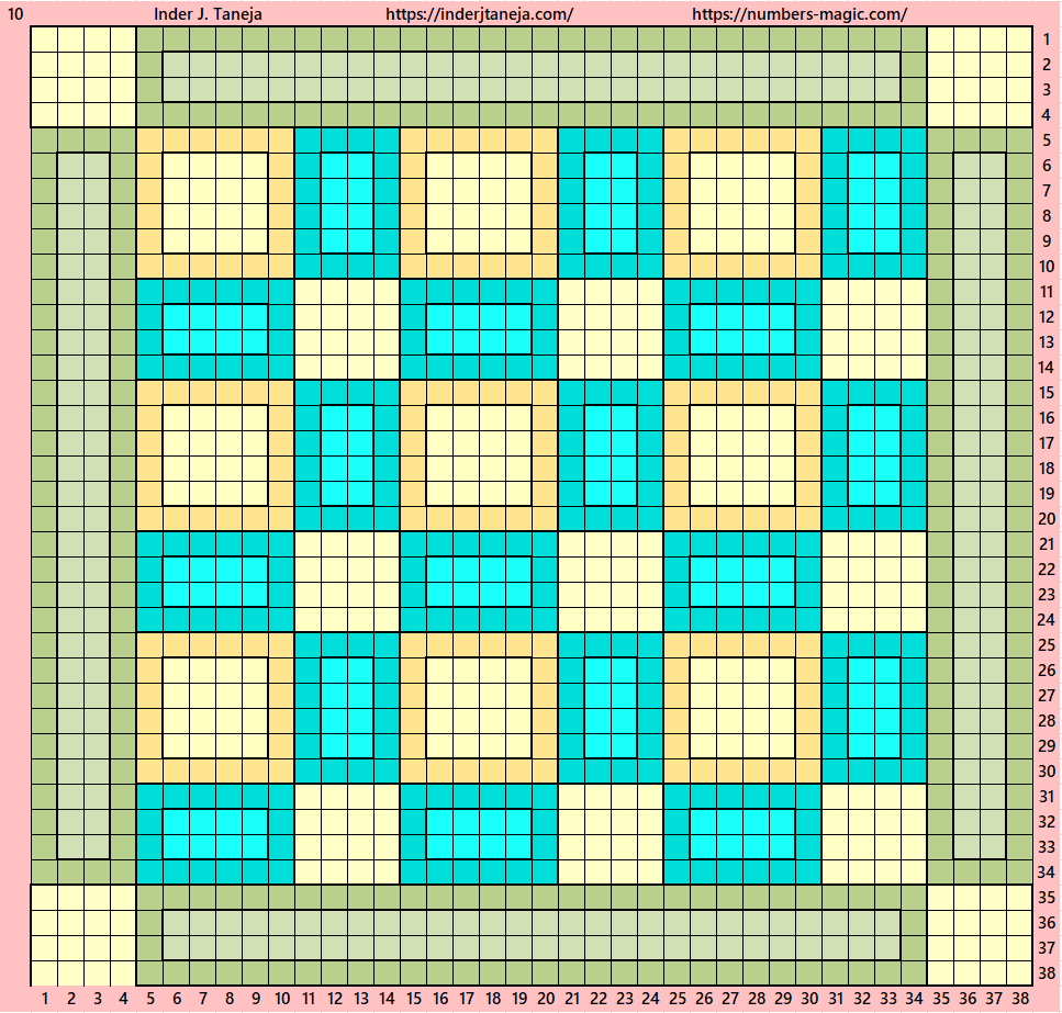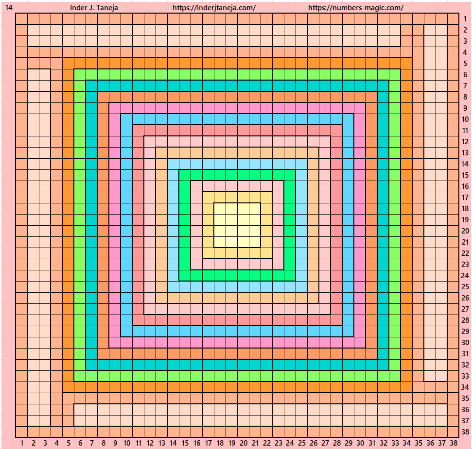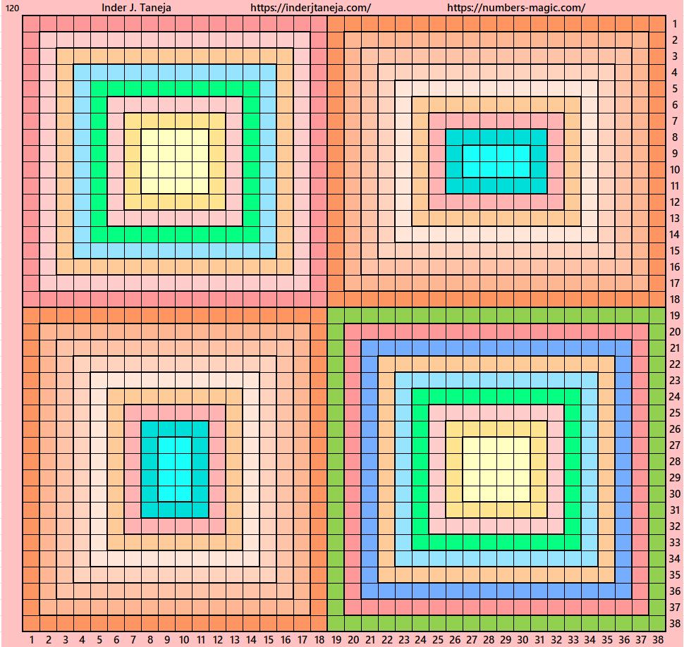 - Inder J. Taneja, Figured Magic Squares of Order 38 Using Bordered Magic Rectangles, Zenodo, January 03, 2023, pp. 1-133, https://doi.org/10.5281/zenodo.7500188.