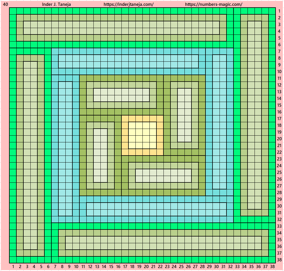- Inder J. Taneja, Figured Magic Squares of Order 40 Using Bordered Magic Rectangles, Zenodo, January 03, 2023, pp. 1-157, https://doi.org/10.5281/zenodo.7500192.