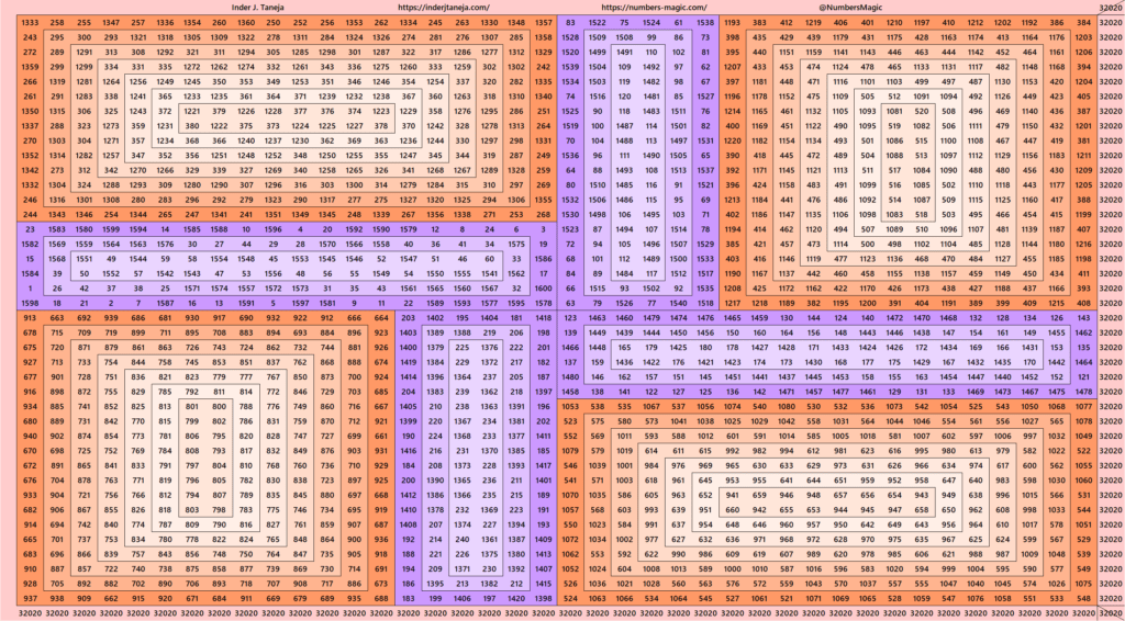 - Inder J. Taneja, Double Crossed Bordered Magic Rectangles and Magic Squares of Order 40, Zenodo, January 30, 2023, pp. 1-102, https://doi.org/10.5281/zenodo.7585787